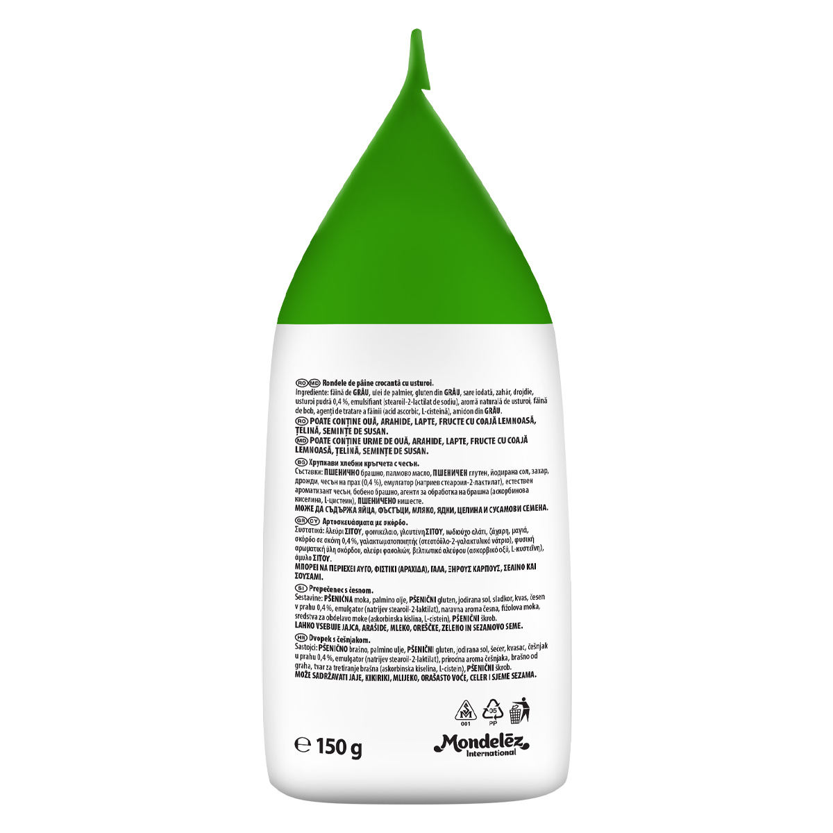 Νόστιμα λεπτοκομμένα διπλοφουρνιστά chips ψωμιού με γεύση σκόρδο.Το λαχταριστό snack που συνοδεύει κάθε στιγμή της ημέρας σου με τη μοναδική του γεύση.