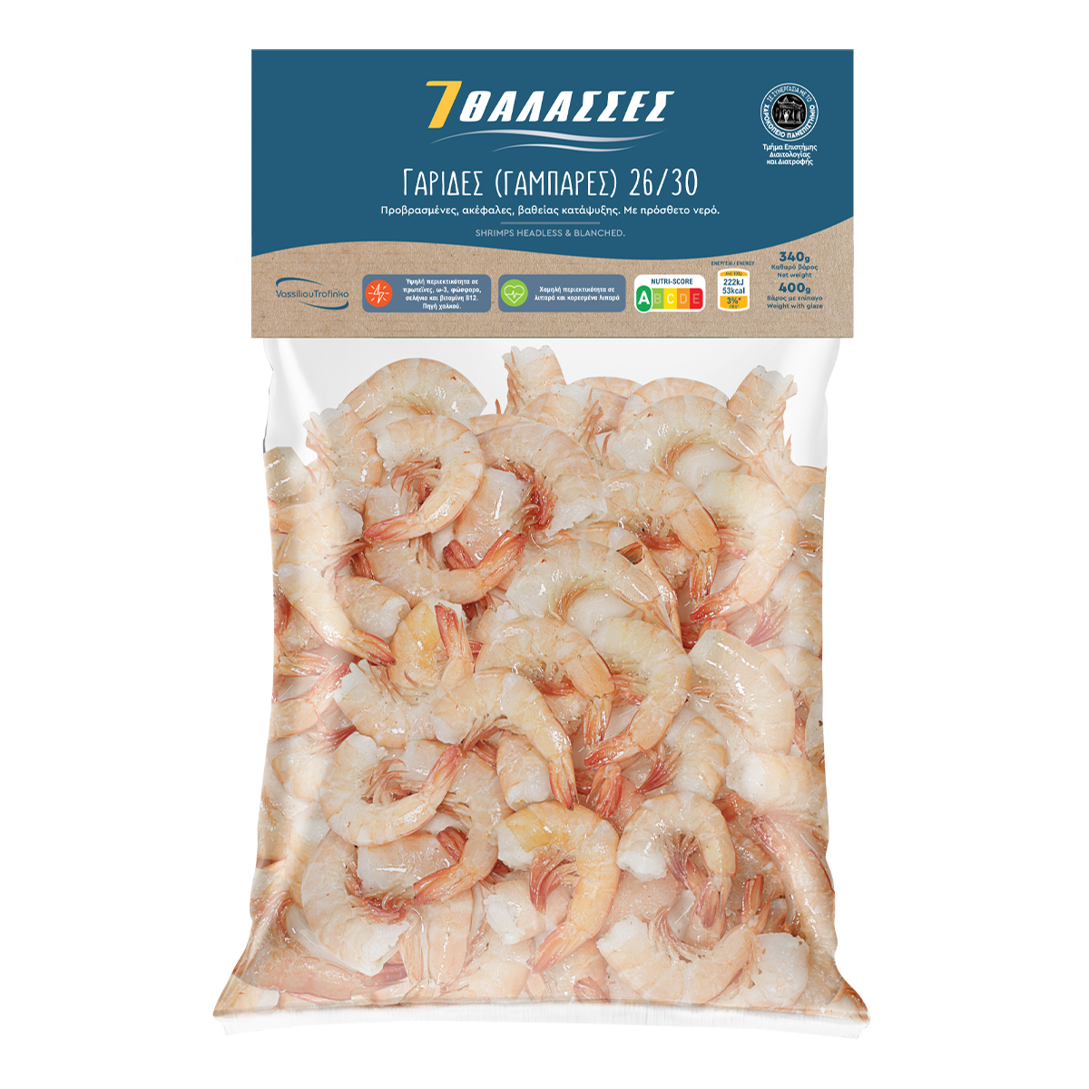 7 Θάλασσες Γαρίδα Ακέφαλη Προβρασμένη 26/30 340 gr