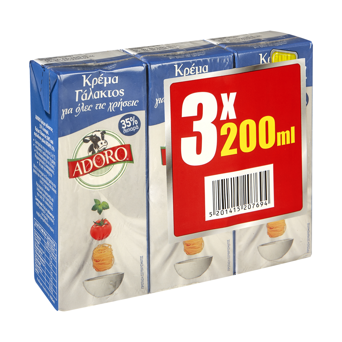 Η Κρέμα Γάλακτος Adoro με 35% λιπαρά και πλούσια υφή, είναι ιδανική για γλυκές και αλμυρές δημιουργίες και χαρίζει μοναδική γεύση. Δοκιμάστε τη στη μαγειρική αλλά και για την πιο τέλεια και βελούδινη σαντιγί.