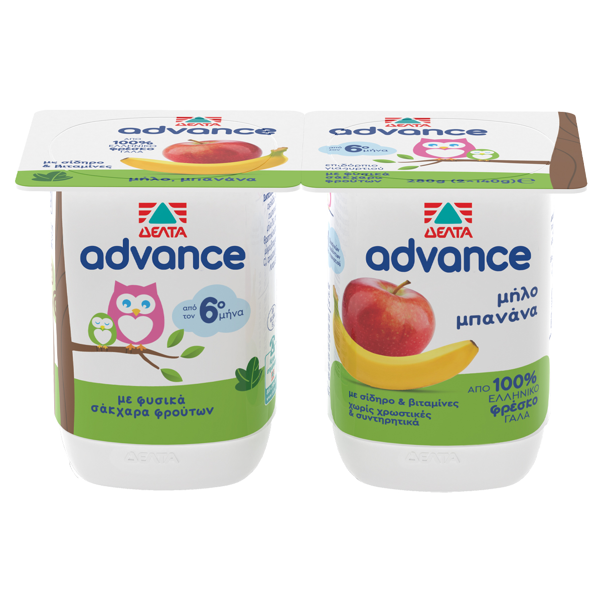 Τα βρεφικά γιαούρτια Δέλτα Advance είναι επιδόρπια γιαουρτιού υψηλής διατροφικής αξίας και αποτελούν ένα ιδανικό διατροφικό συμπλήρωμα για βρέφη & μικρά παιδιά.