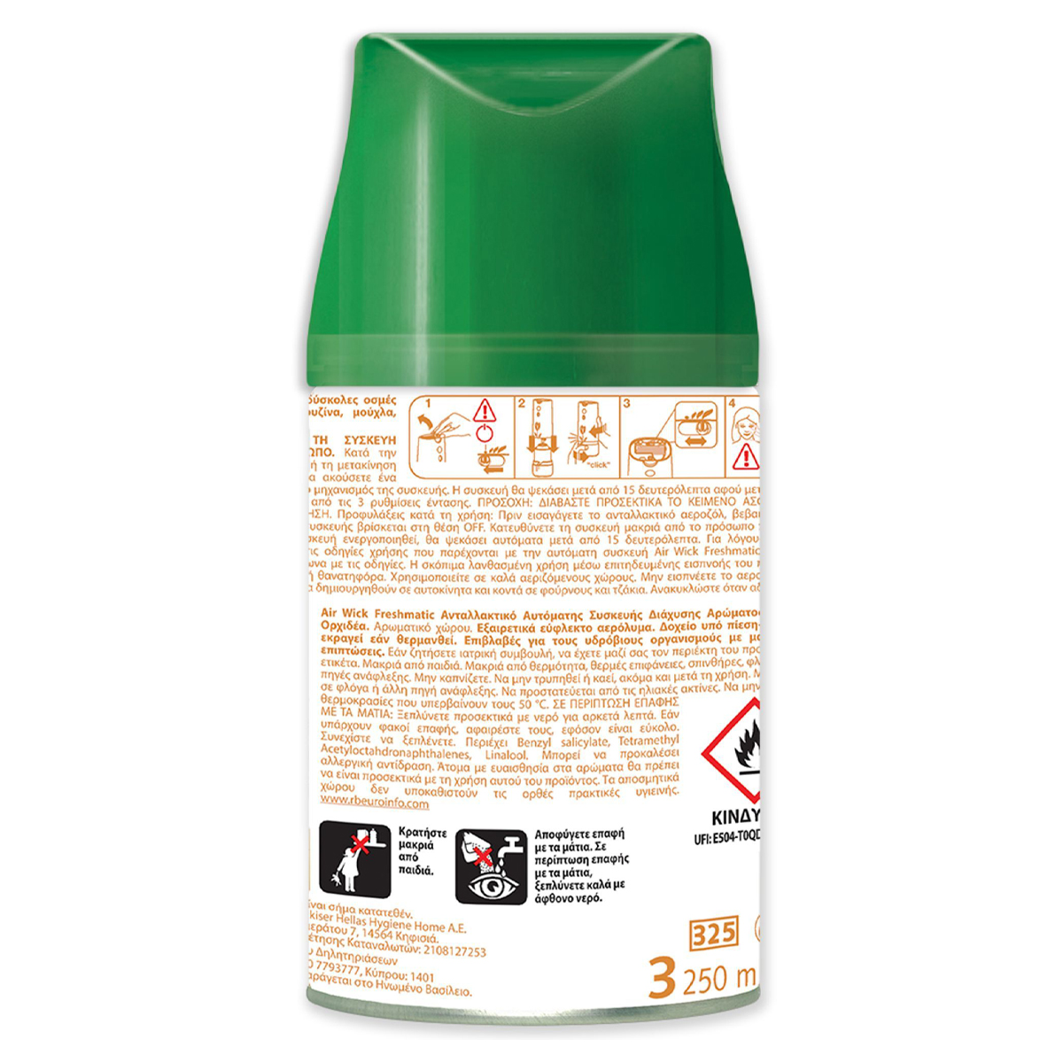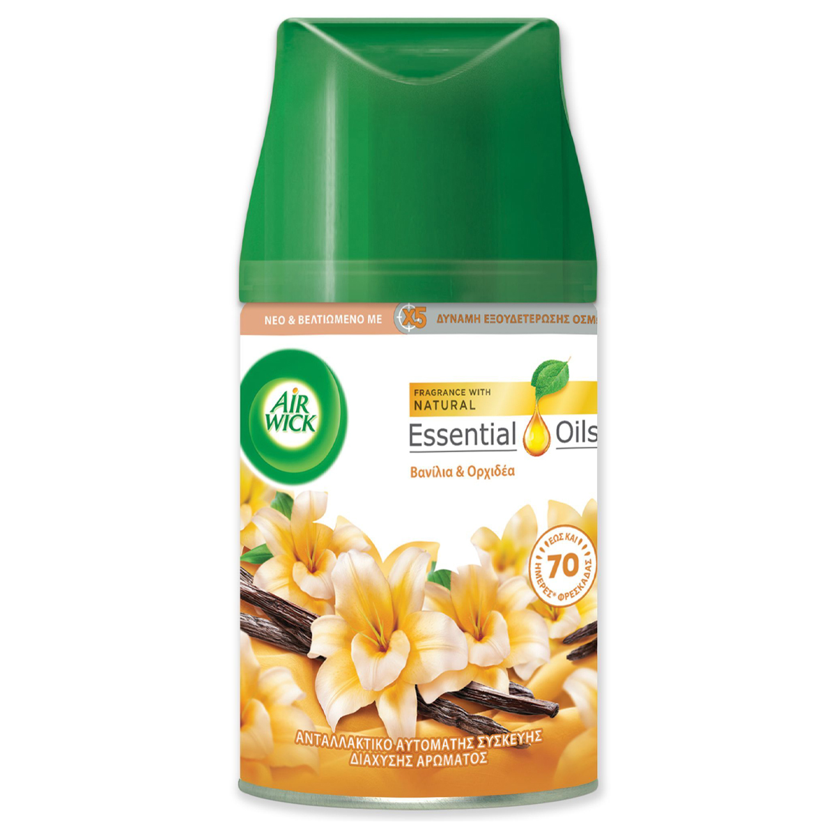 Αφήστε το αξεπέραστο άρωμα Βανίλιας Μαδαγασκάρης και τις ντελικάτες νότες Ορχιδέας να πλημμυρίσουν το χώρο σας & δημιουργήστε την πιο ζεστή απολαυστική ατμόσφαιρα. Άρωμα που διαρκεί έως και 70 ημέρες*, εξουδετερώνοντας τις άσχημες οσμέςΈως και 70 ημέρες φρεσκάδας*.* Εφόσον το προϊόν χρησιμοποιείται με τη νέα Αυτόματη Συσκευή Διάχυσης Αρώματος Air Wick που απεικονίζεται και εφόσον έχει ρυθμιστεί στη χαμηλότερη συχνότητα ψεκασμού.