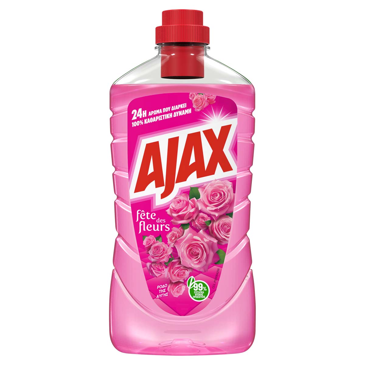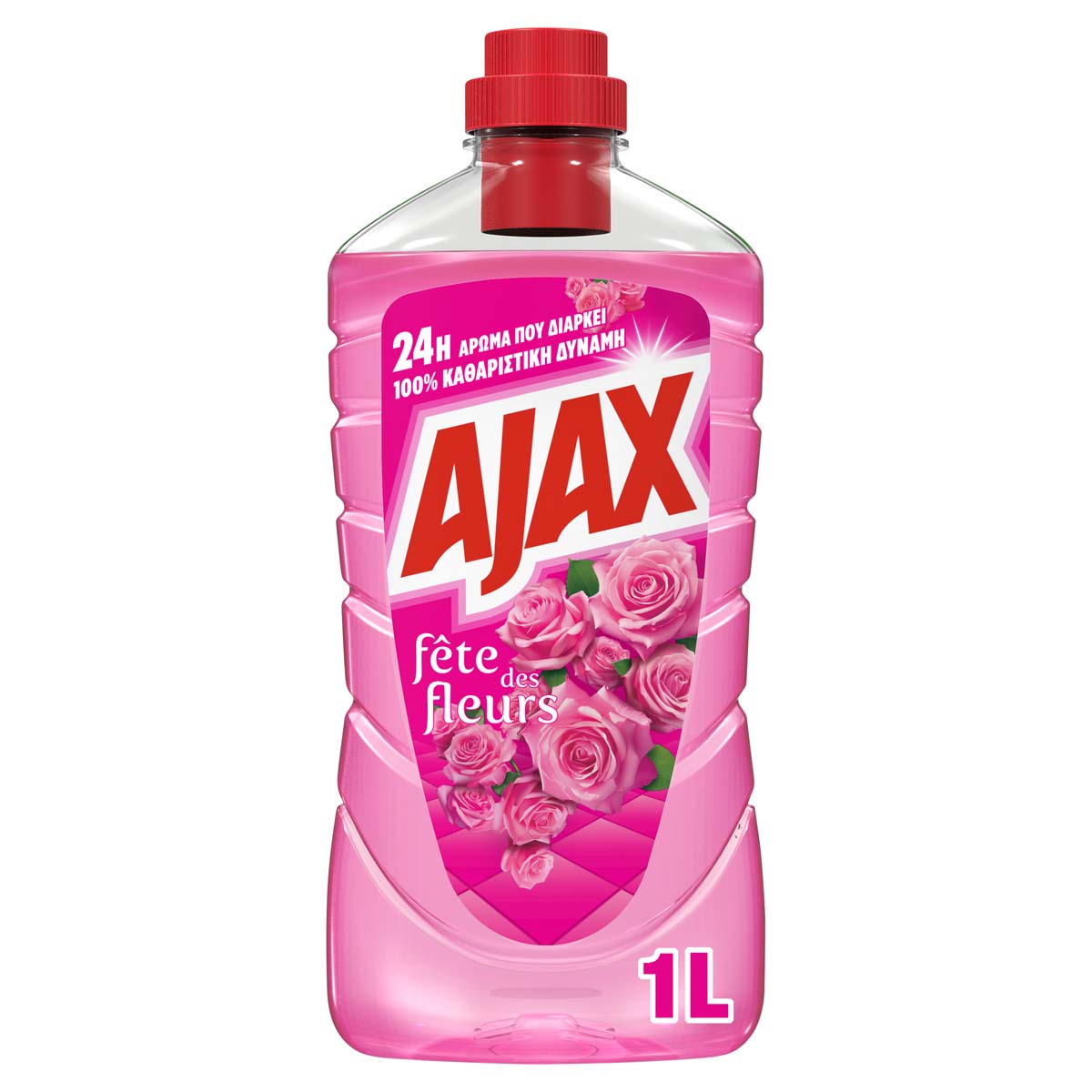 Το Ajax Fete des Fleurs Ρόδο της Αυγής Υγρό Καθαριστικό Πατώματος προσφέρει έντονο άρωμα φρεσκάδας, που διαρκεί 24 ώρες. Το Ajax πολυκαθαριστικό προσφέρει 100% καθαριστική δύναμη.