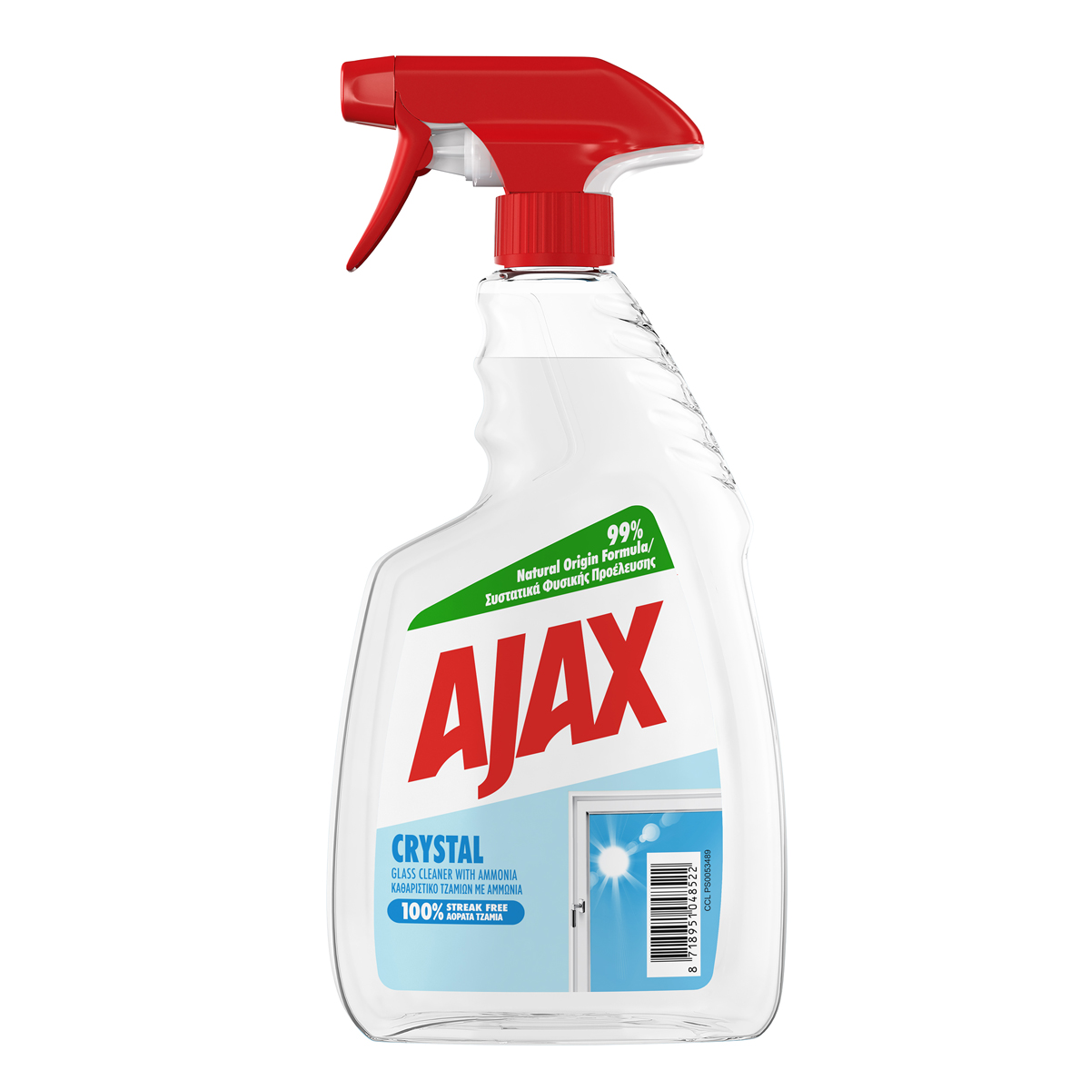 Το Ajax ανανεώνεται με καινούργια σύνθεση, 99% φυσικής προέλευσης προσφέροντας 100% Τζάμια Αόρατα. 100% τζάμια αόρατα χωρίς στίγματα. 99% συστατικά φυσικής προέλευσης. 99% βιοδιασπώμενη σύνθεση. Ανακυκλώσιμο μπουκάλι και αντλία. Παράγεται υπεύθυνα.