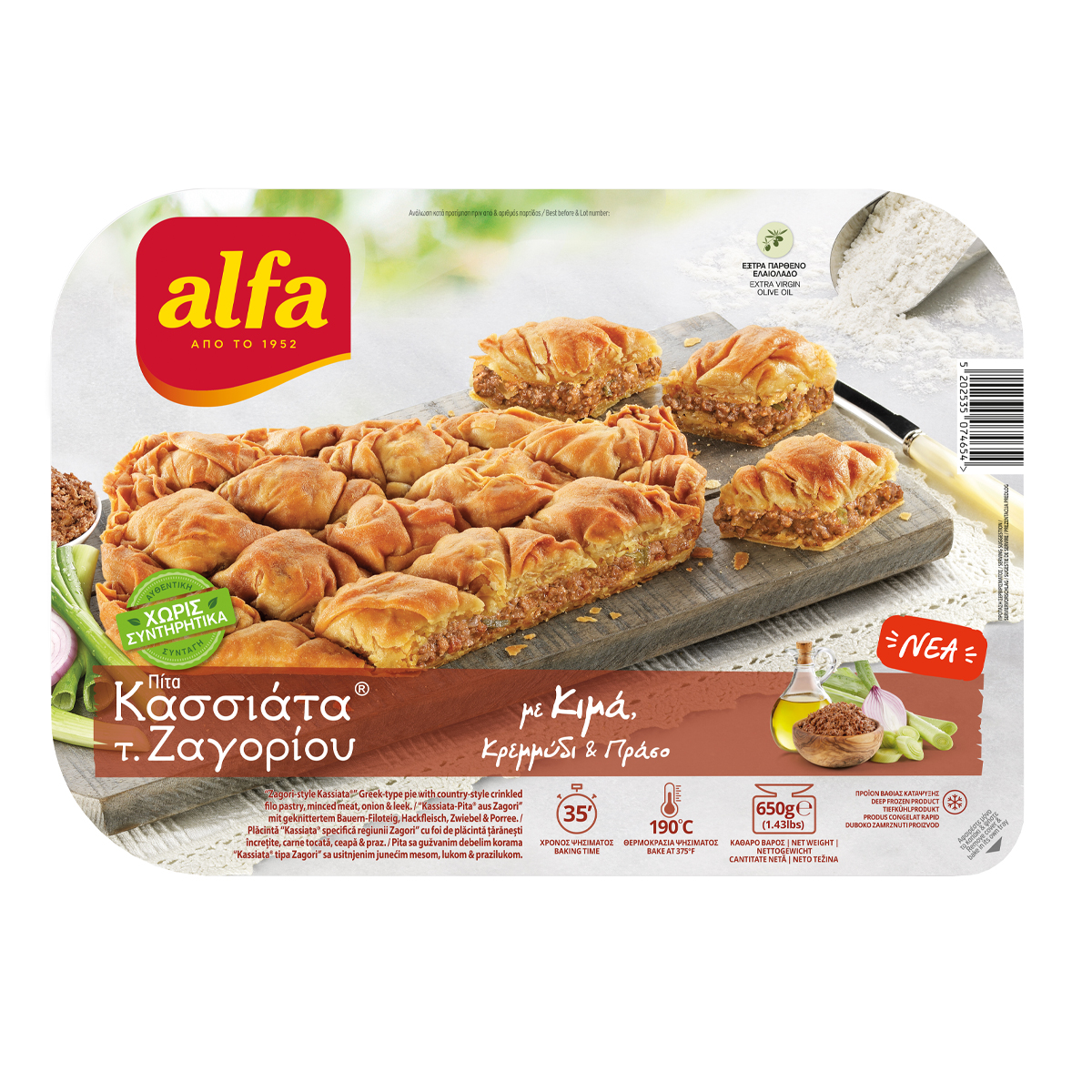 Alfa Πίτα Κασσιάτα Τ. Ζαγορίου Με Κιμά Κρεμμύδι & Πράσο 650 gr