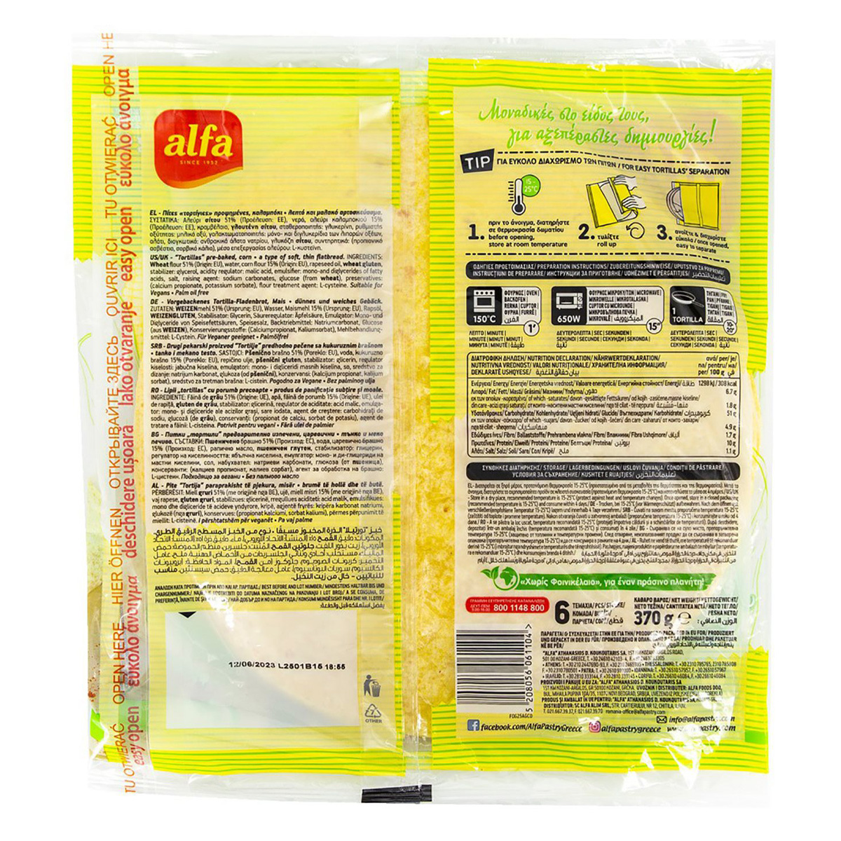 Alfa Τορτίγιες Καλαμπόκι Vegan 6 Τεμάχια 370 gr
