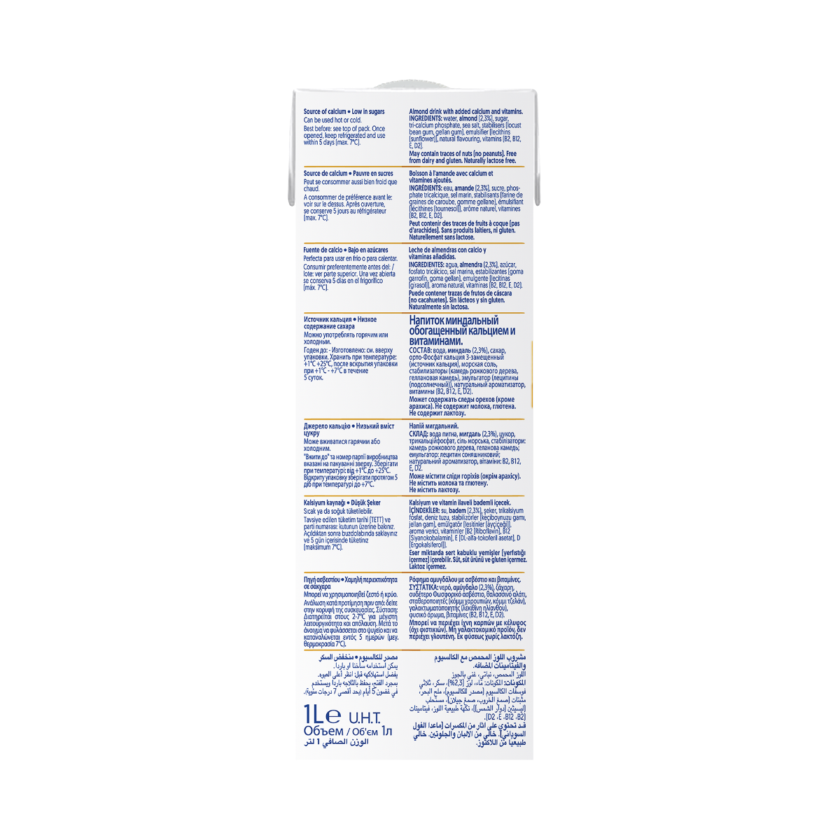 Νερό, ΑΜΥΓΔΑΛΟ (2,3%), ασβέστιο (φωσφορικό ασβέστιο), θαλασσινό αλάτι, σταθεροποιητές (κόμμι χαρουπιών, κόμμι τζελάν), γαλακτωματοποιητής (λεκιθίνες), φυσικές αρωματικές ύλες, βιταμίνες (Β12, D2, Ε).
