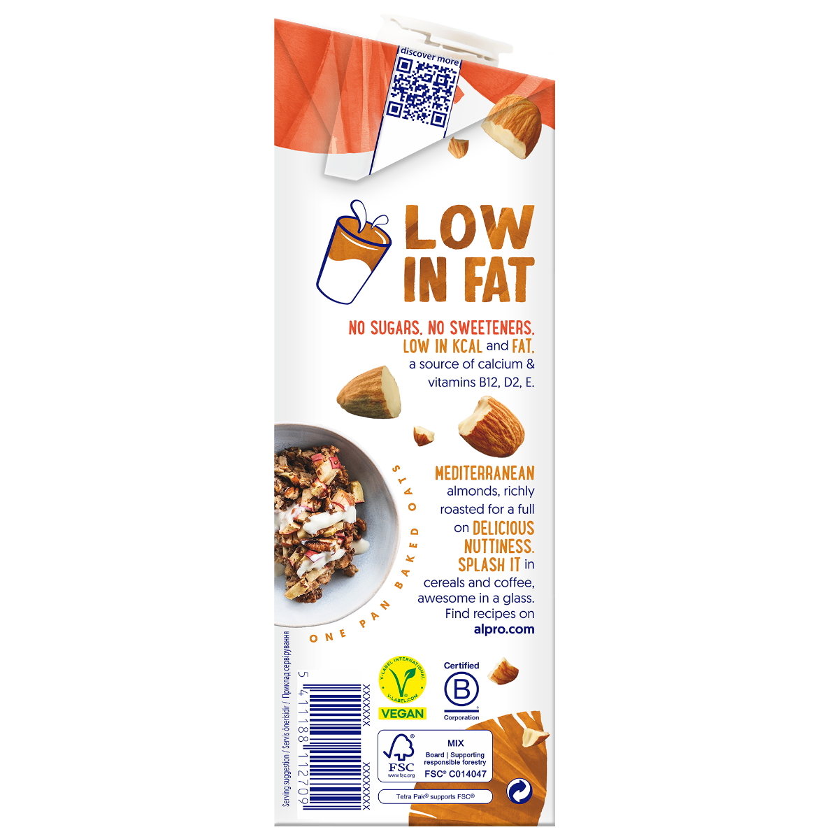 Ρόφημα Αμυγδάλου χωρίς ζάχαρη Alpro. Απολαυστικό, με λεπτή γεύση και κρεμώδη υφή. Τα αμύγδαλά μας είναι ελαφρώς καβουρδισμένα, ώστε να κρατήσουν την νοστιμιά τους.