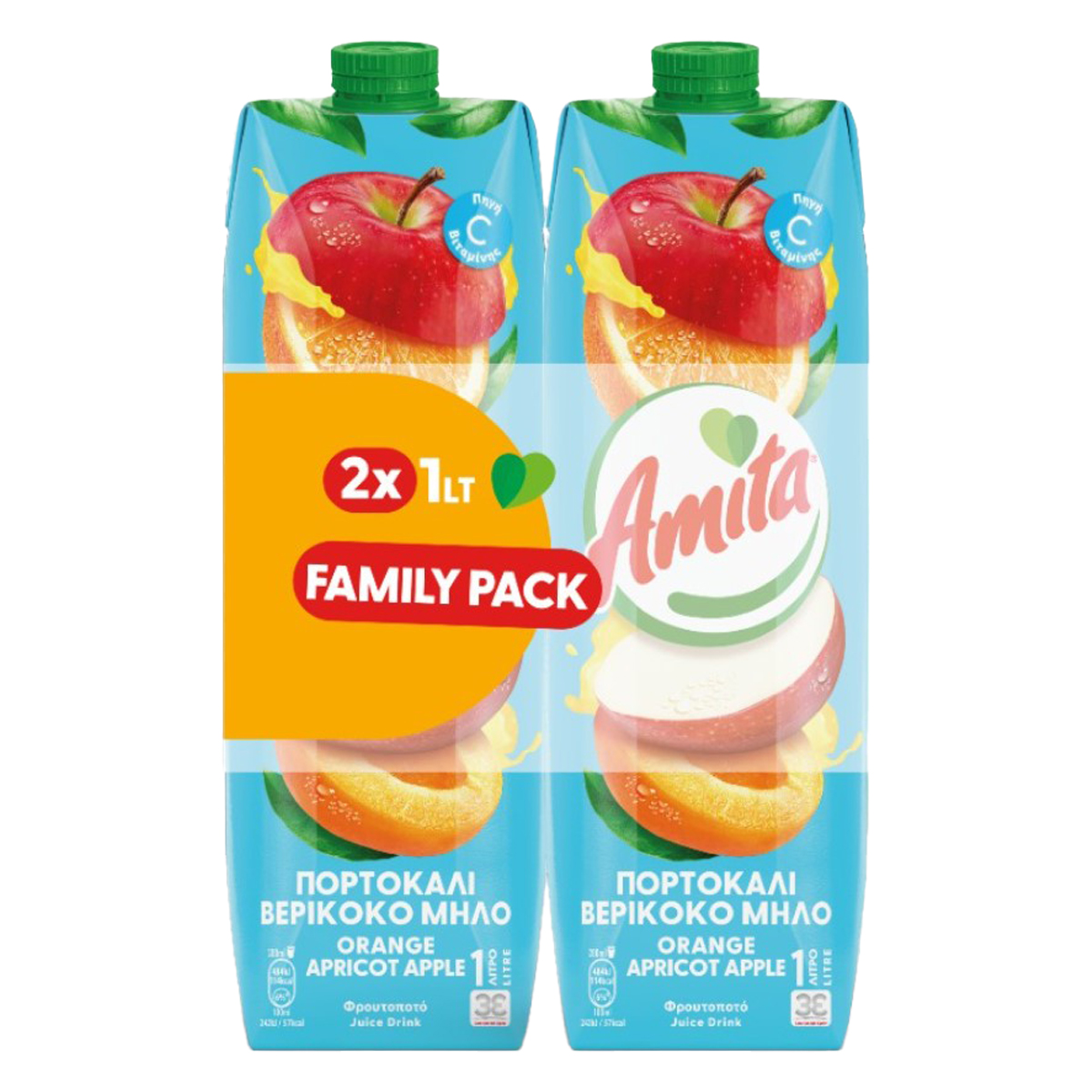 Amita Φρουτοποτό Πορτοκάλι Μήλο Βερίκοκο 2 x 1 lt