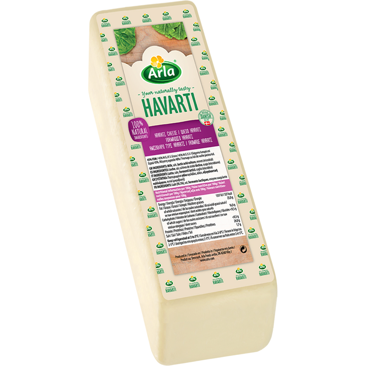 ARLA HAVARTI, ένας αυθεντικός δανέζικος τύπος ημίσκληρου τυριού που παράγεται εδώ και πολλές γενιές. Δημιουργήθηκε από τη Δανέζα Hanne Nielsen, την πρώτη γυναίκα παραγωγό τυριού, πριν από 100 χρόνια και πήρε το όνομά του από τη φάρμα της, όπου και το έφτιαχνε. Το Arla Havarti υπόσχεται την αγνή, πλούσια και φυσική γεύση της δανέζικης παράδοσης. Έχει μεστή και κρεμώδη γεύση, που γεννιέται από τα 100% φυσικά συστατικά του, χωρίς χρήση χρωστικών και συντηρητικών. Είναι κατάλληλο για τοστ, σάντουιτς, μπουκίτσες, ή απλά σκέτο.