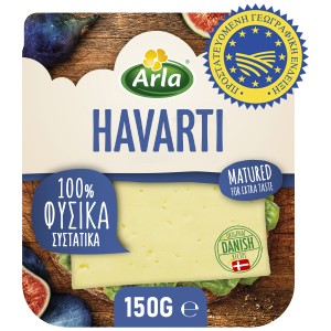 ARLA HAVARTI, ένας αυθεντικός δανέζικος τύπος ημίσκληρου τυριού που παράγεται εδώ και πολλές γενιές. Δημιουργήθηκε από τη Δανέζα Hanne Nielsen, την πρώτη γυναίκα παραγωγό τυριού, πριν από 100 χρόνια και πήρε το όνομά του από τη φάρμα της, όπου και το έφτιαχνε. Το Arla Havarti υπόσχεται την αγνή, πλούσια και φυσική γεύση της δανέζικης παράδοσης. Έχει μεστή και κρεμώδη γεύση, που γεννιέται από τα 100% φυσικά συστατικά του, χωρίς χρήση χρωστικών και συντηρητικών. Είναι κατάλληλο για τοστ, σάντουιτς, μπουκίτσες, ή απλά σκέτο.