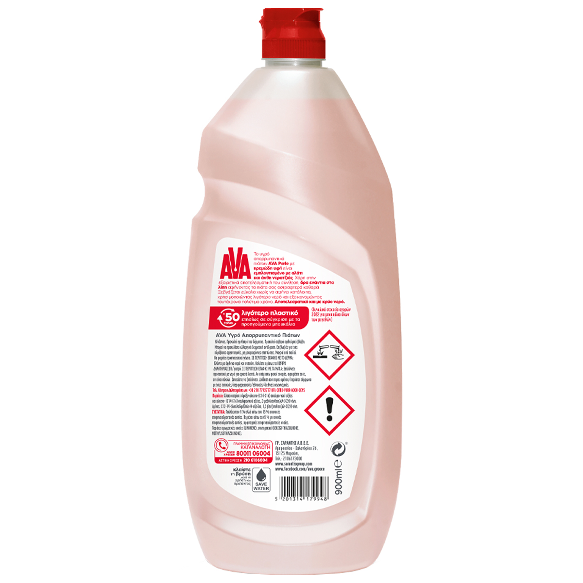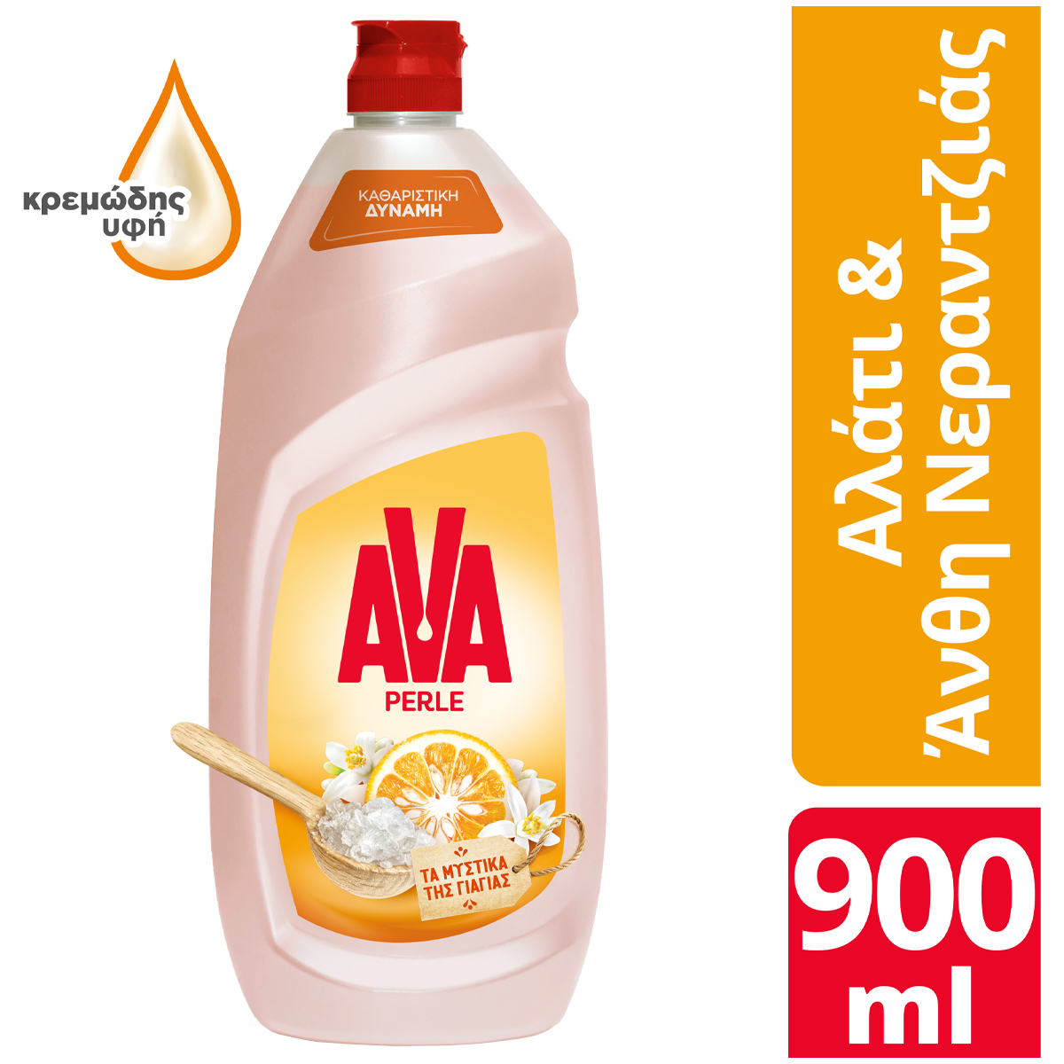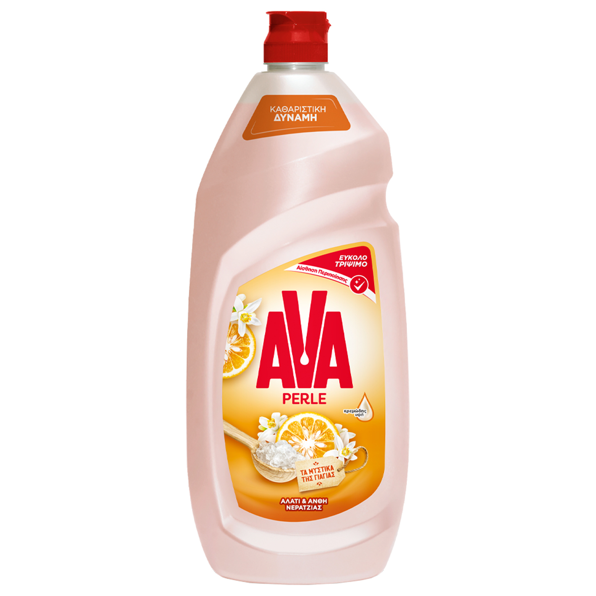 Υπάρχουν μυστικά καθαριότητας στο πλύσιμο των πιάτων; Ανακάλυψε τα Μυστικά της Γιαγιάς, τη νέα σειρά AVA PERLE για τέλεια καθαριότητα με τα πιο αποτελεσματικά υλικά. Το νέο υγρό πιάτων AVA PERLE με αλάτι και άνθη νερατζιάς, έχει υπέροχο άρωμα, κρεμώδη υφή και συνδυάζει την καθαριστική δύναμη με την αίσθηση περιποίησης. Προσφέρει εύκολο τρίψιμο διεισδύοντας και διαλύοντας τα υπολείμματα φαγητού από τα πιάτα σας. 900ml - Με Αλάτι και Άνθη Νερατζιάς - Καθαριστική Δύναμη - Εύκολο τρίψιμο - Κρεμώδης υφή και αίσθηση περιποίησης - Εξαιρετικά αποτελεσματική σύνθεση - Αποτελεσματικό και στο κρύο νερό AVA, Καθαρή Φροντίδα!
