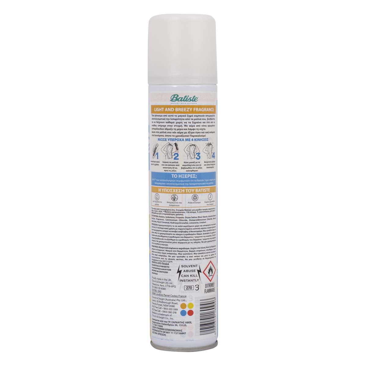 O ιδανικός τρόπος για να ανανεώσετε τα μαλλιά σας δίνοντάς τους μια αίσθηση δροσιάς! Το Batiste Dry Shampoo Fresh εξαφανίζει την λιπαρότητα από τις ρίζες, δίνοντας φρεσκάδα και ζωντάνια στα θαμπά, άτονα μαλλιά, και όλα αυτά χωρίς μια σταγόνα νερό. Σε χρόνο μηδέν δίνει στα μαλλιά σας όγκο και απαλή υφή, αφήνοντας μια αίσθηση καθαριότητας και φρεσκάδας, χωρίς να χρειάζεται να αγχώνεστε πια αν παραλείψετε ένα κανονικό λούσιμο.
