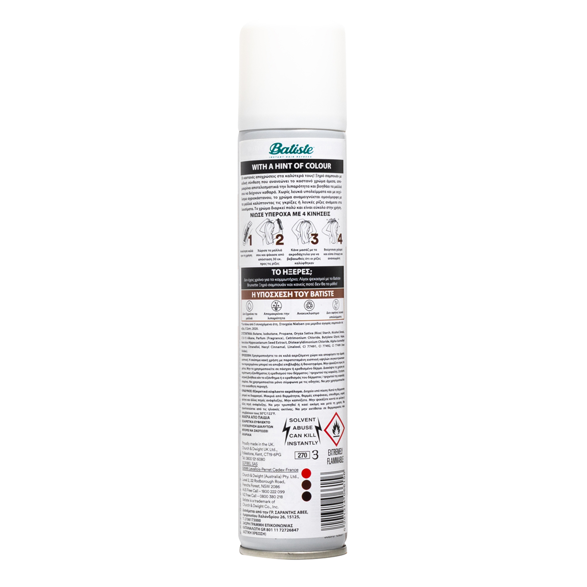 Το ξηρό σαμπουάν Batiste Dry Shampoo Μedium απορροφά τη λιπαρότητα από τις ρίζες των μαλλιών σας, δίνοντας ζωή σε άτονα μαλλιά, ενώ σας επιτρέπει να διατηρήσετε το χρώμα των μαλλιών σας για περισσότερο καιρό! Kαλύπτει τις λευκές ρίζες των μαλλιών σας. Για σκουρόχρωμες αποχρώσεις. Σε χρόνο μηδέν δίνει στα μαλλιά σας όγκο και απαλή υφή, αφήνοντας μια αίσθηση καθαριότητας και φρεσκάδας, χωρίς να χρειάζεται να αγχώνεστε πια αν παραλείψετε ένα κανονικό λούσιμο.