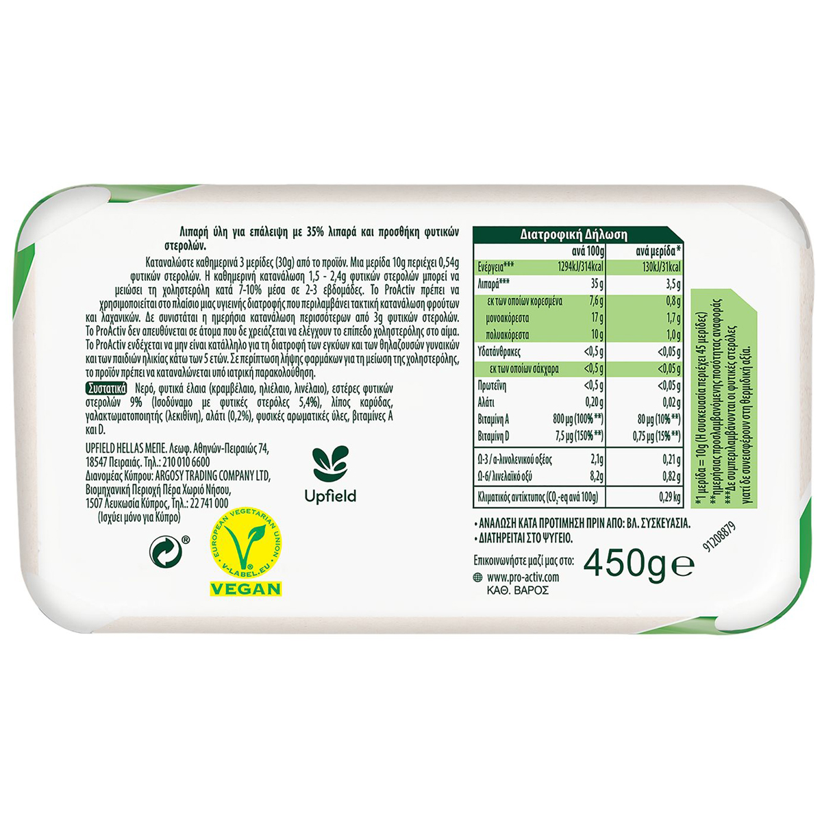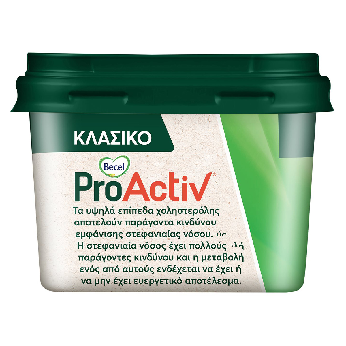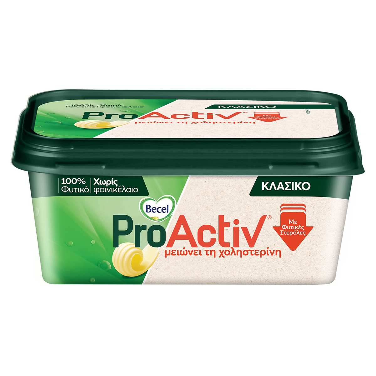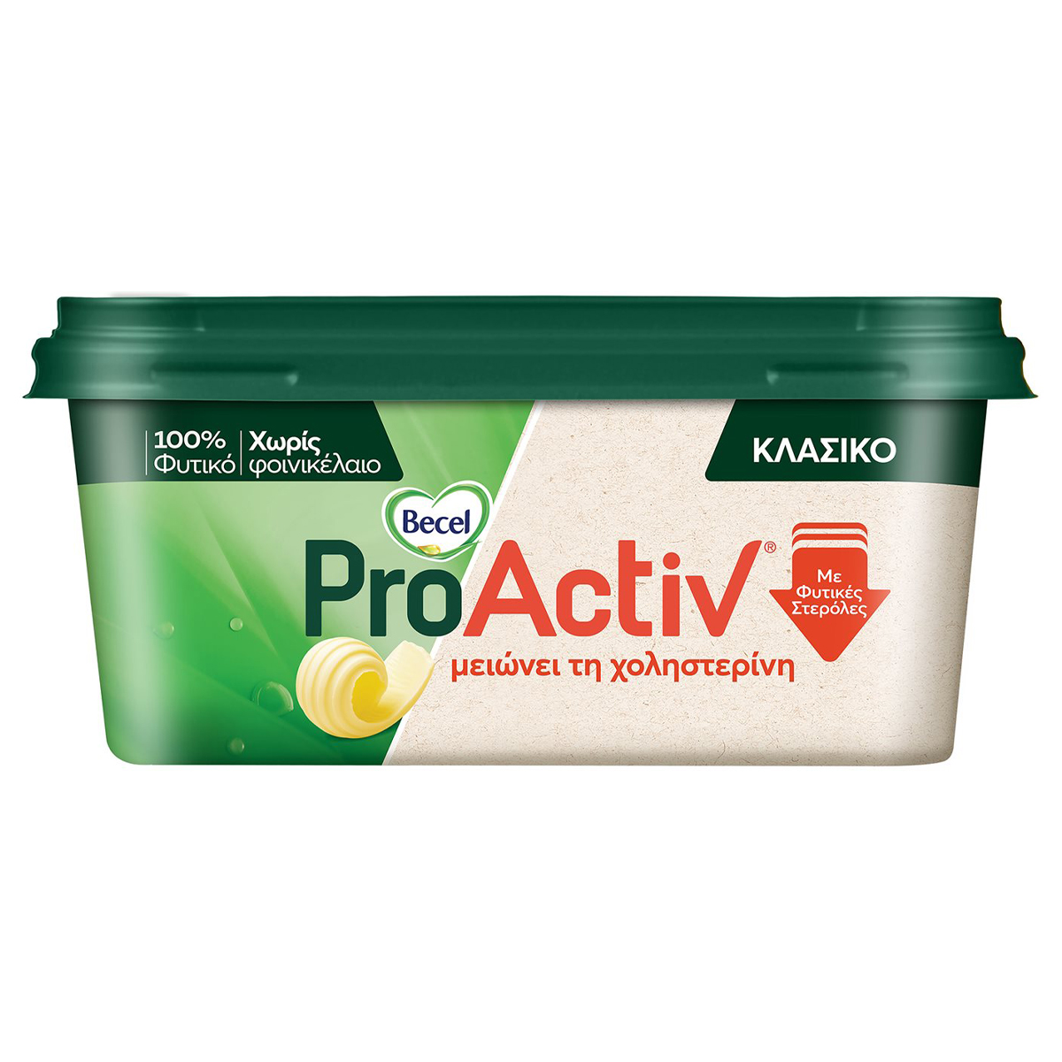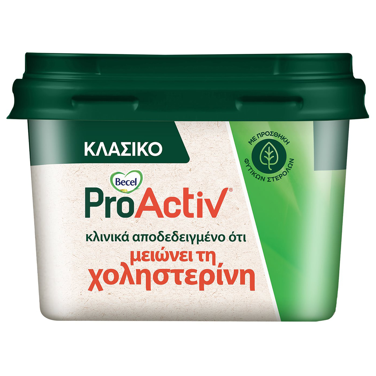 Το Becel ProActiv είναι ένα προϊόν επάλειψης που είναι κλινικά αποδεδειγμένο ότι μειώνει αποτελεσματικά τη χοληστερίνη 7-10%, σε 2-3 εβδομάδες στα πλαίσια μιας ισορροπημένης διατροφής και ενός υγιεινού τρόπου ζωής. Χωρίς φοινικέλαιο.