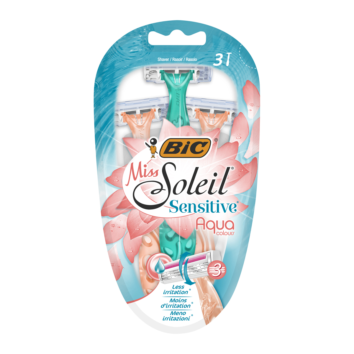 Bic Miss Soleil Ξυραφάκια Μιας Χρήσης Sensitive Aqua Colours 3 Τεμάχια