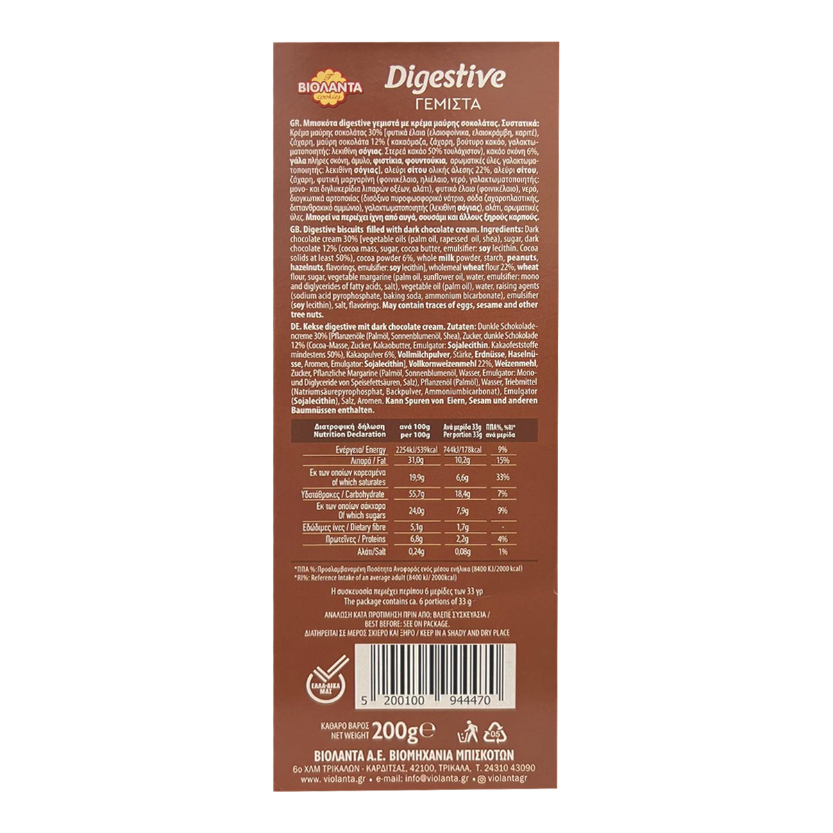 Βιολάντα Μπισκότα Digestive Γεμιστά Με Κρέμα Μαύρη Σοκολάτα 200 gr