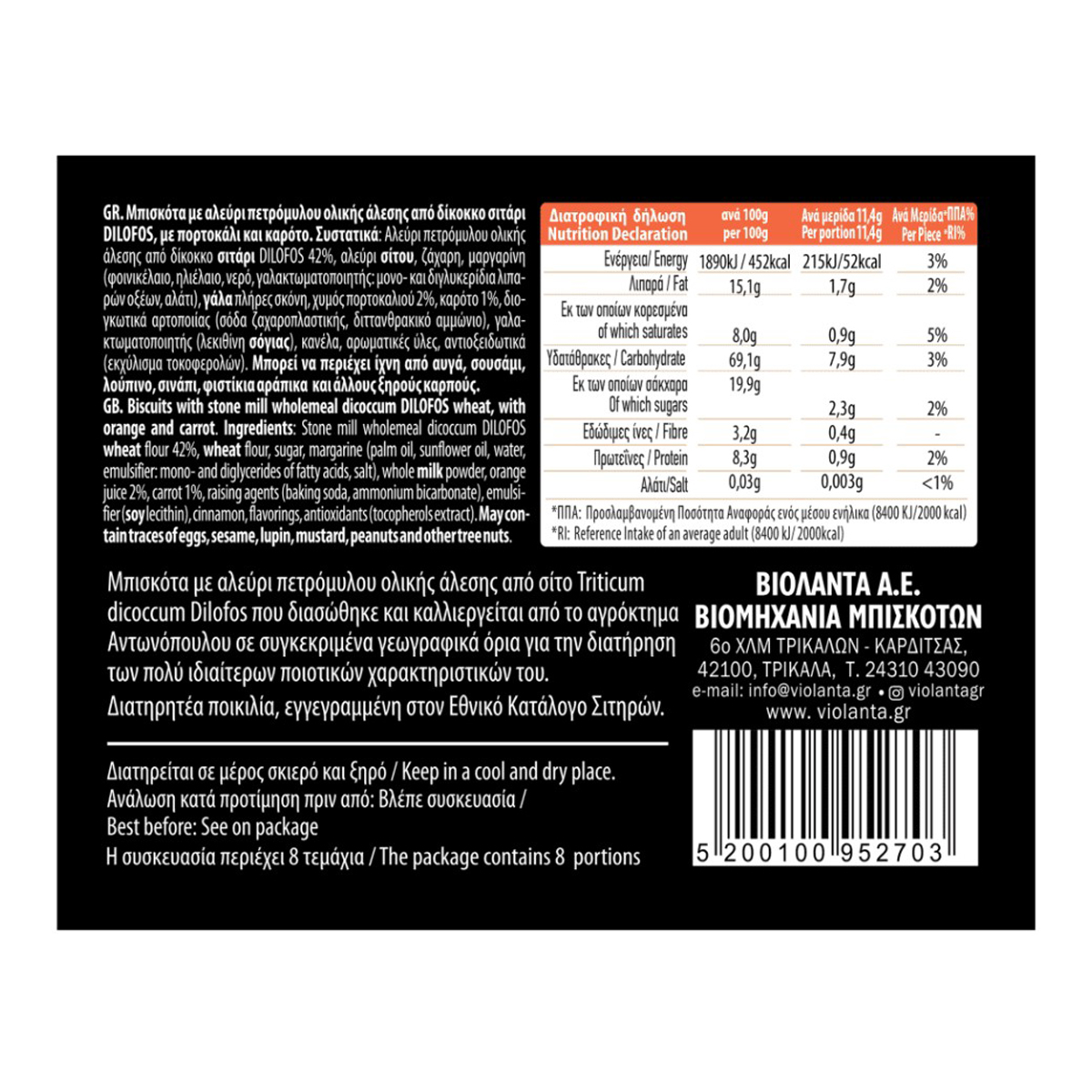 ΒΙΟΛΑΝΤΑ Α.Ε. 6ο χλμ Τρικάλων - Καρδίτσας, Τ.Κ. 42100, Τρίκαλα - Τηλ.: 24310 43090 - Email: info@violanta.gr