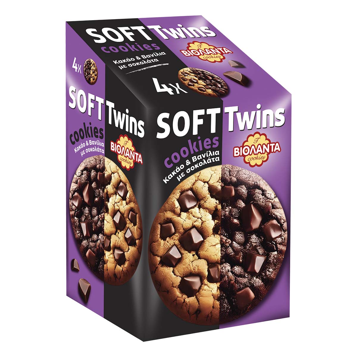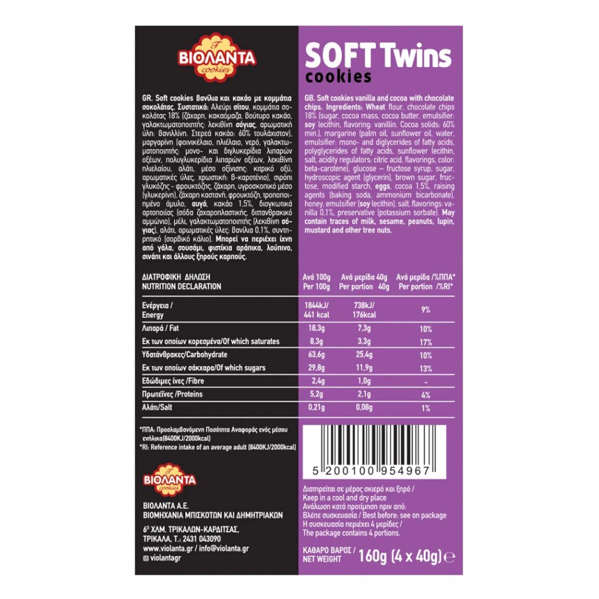 Βιολάντα Soft Twins Cookies Μπισκότα Κακάο & Βανίλια Με Σοκολάτα 160 gr