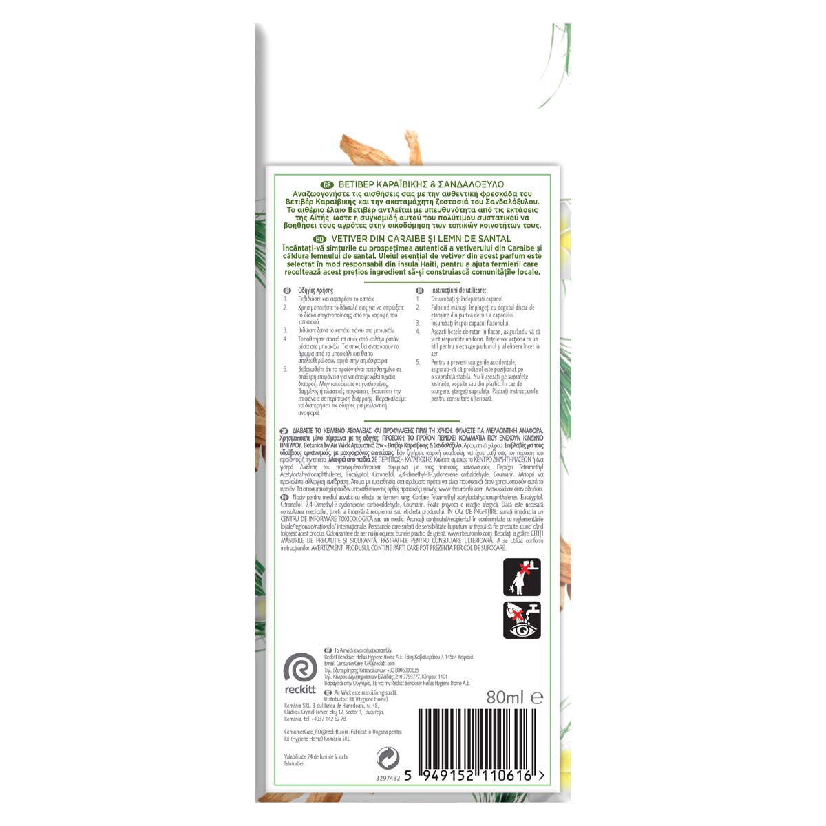 Βετιβέρ Καραϊβικής & Σανδαλόξυλο Αναζωογονήστε τις αισθήσεις σας με την αυθεντική φρεσκάδα του Βετιβέρ Καραϊβικής και την ακαταμάχητη ζεστασιά του Σανδαλόξυλου. Το αιθέριο έλαιο Βετιβέρ αντλείται από τις εκτάσεις της Αϊτής, ώστε η συγκομιδή αυτού του πολύτιμου συστατικού να βοηθήσει του αγρότες στην οικοδόμηση των τοπικών κοινοτήτων τους. - Με φυσικά συστατικά που συλλέγονται με σεβασμό προς το περιβάλλον - Χωρίς χρωστικές ουσίες -Χωρίς φθαλικές ενώσεις.