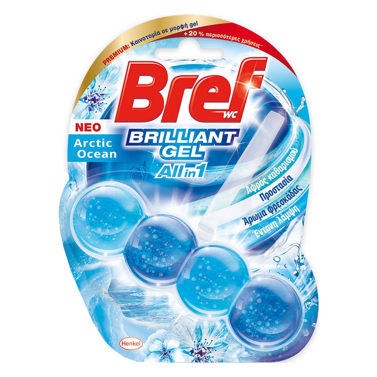 To Bref Brilliant Gel Arctic Ocean Scent είναι το πρώτο premium μπλοκ τουαλέτας. Χάρη στην ενισχυσμένη με Advanced Gel Technology φόρμουλα 4 λειτουργιών, το μπλοκ τουαλέτας καθαρίζει την λεκάνη σας εμποδίζοντας την συσσώρευση υπολειμμάτων, χαρίζοντας ένα υπέροχο άρωμα φρεσκάδας και λάμψη. Το νέο μπλοκ τουαλέτας προσφέρει ακόμα περισσότερο άρωμα* κι αποτελεί την ιδανική λύση για την τουαλέτα σας! Απλά τοποθετήστε το προϊόν στο χείλος της λεκάνης, προσαρμόστε το σύμφωνα με τη ροή του νερού και απολαύστε μέγιστη καθαριότητα και φρεσκάδα αρώματος Αρκετικού Ωκεανού σε κάθε χρήση!