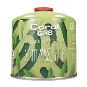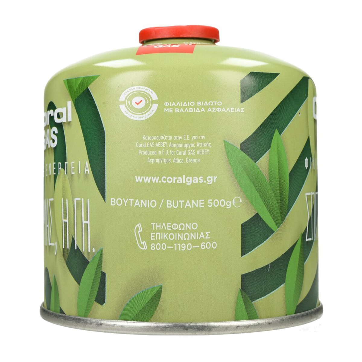 Coral Gas Φιαλίδιο Γη Βουτανίου Βιδωτό Με Βαλβίδα Ασφάλειας Πράσινο 500 gr