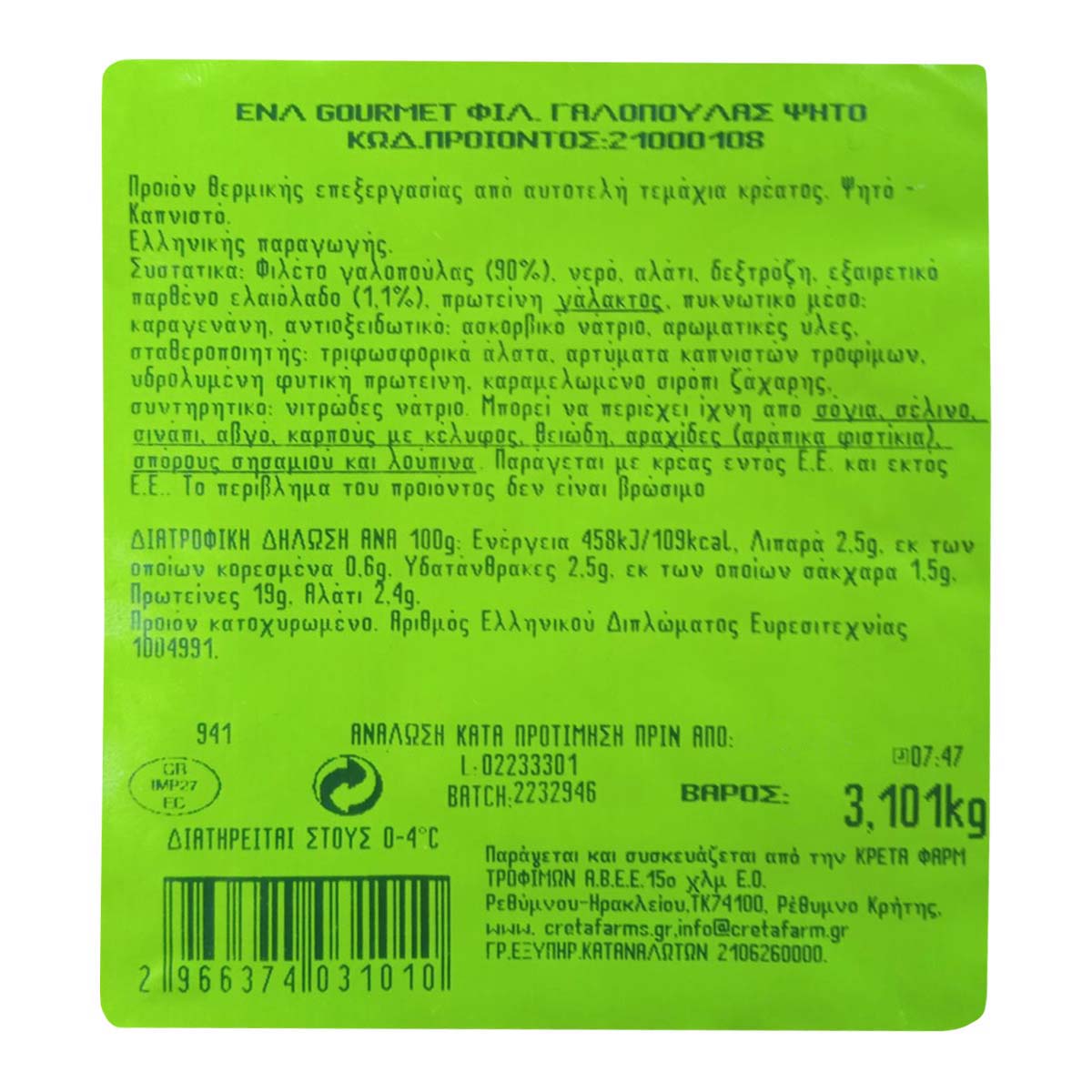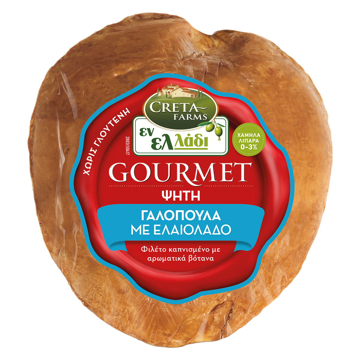 Η ψητή γαλοπούλα, πιο αγνή από ποτέ! Αυθεντική, με πλούσια γεύση και, κυρίως, χωρίς ενοχές. Από ατόφια φιλέτα γαλοπούλας χωρίς συντηρητικά, χωρίς χρωστικές, χωρίς γλουτένη και με μόλις 0-3% λιπαρά για να μην βάζετε φρένο στην απόλαυση! Το μυστικό είναι στο ελαιόλαδο και στο σιγοψήσιμο στον φούρνο, με ελαφρές νότες καπνού που δίνουν μια ξεχωριστή γεύση στη γαλοπούλα σας. Με την εγγύηση ποιότητας της Creta Farms.