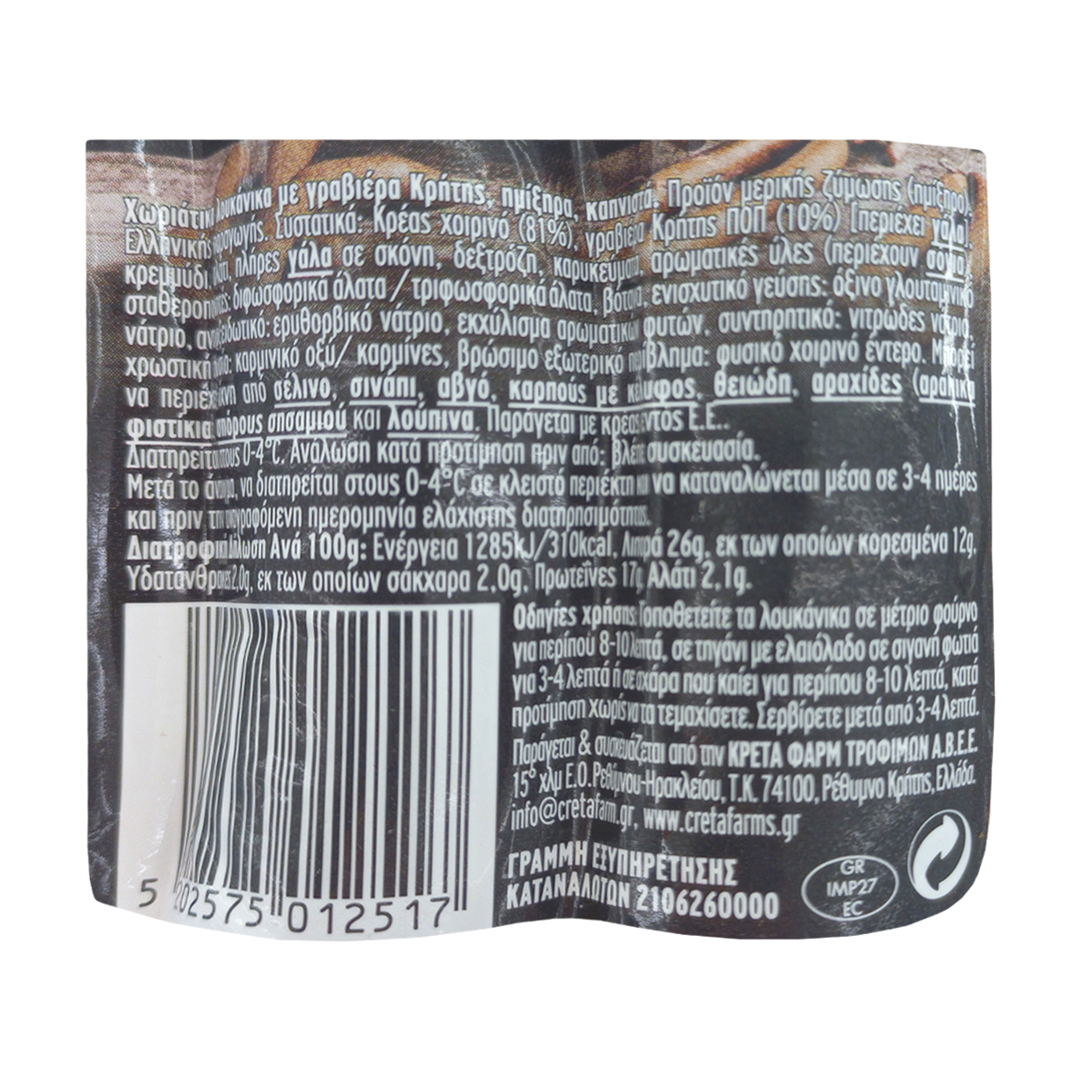 Creta Farms Λουκάνικα Χωριάτικα Με Γραβιέρα Χωρίς Γλουτένη 400 gr