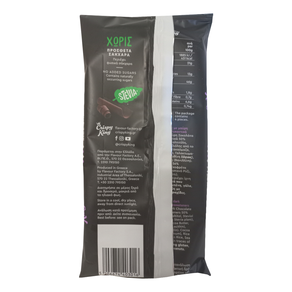 Γνωρίστε την απόλυτη Ρυζογκοφρέτα με μαύρη σοκολάτα ΙΟΝ, χωρίς ζάχαρη, με γλυκαντικό από το φυτό στέβια. Μια αξεπέραστη γκοφρέτα που κανείς δεν μπορεί να αντισταθεί, σε πρακτική συσκευασία 4 τεμαχίων. Το υγιεινό σνακ που θα σας κερδίσει από την πρώτη μπουκιά!