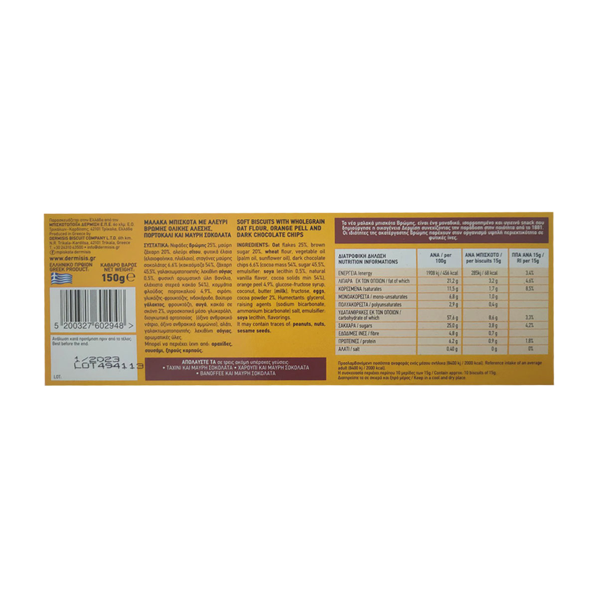 Δερμίσης Μαλακά Μπισκότα Βρώμης Πορτοκάλι 150 gr