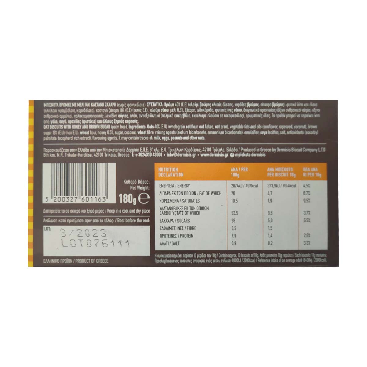 Δερμίσης Τραγανά Μπισκότα Βρώμης Με Μέλι 180 gr
