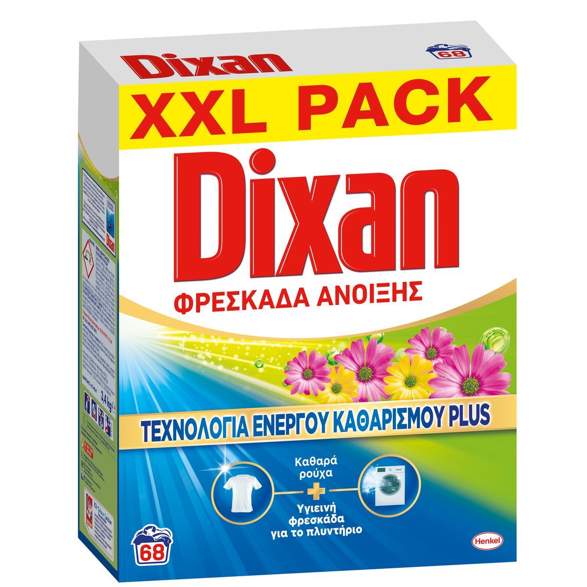 Το Dixan Απορρυπαντικό Πλυντηρίου Ρούχων σε σκόνη με τεχνολογία Ενεργού ΚαθαρισμούPLUS, είναι αποτελεσματικό ακόμα και με τους πιο επίμονους λεκέδες. Η νέα του σύνθεση εισχωρεί βαθιά στις ίνες των ρούχων, αφαιρώντας και τα πιο μικρά σωματίδια ρύπων, ενώ παράλληλα προστατεύει τα ρούχα σας από την δημιουργία κόμπων.