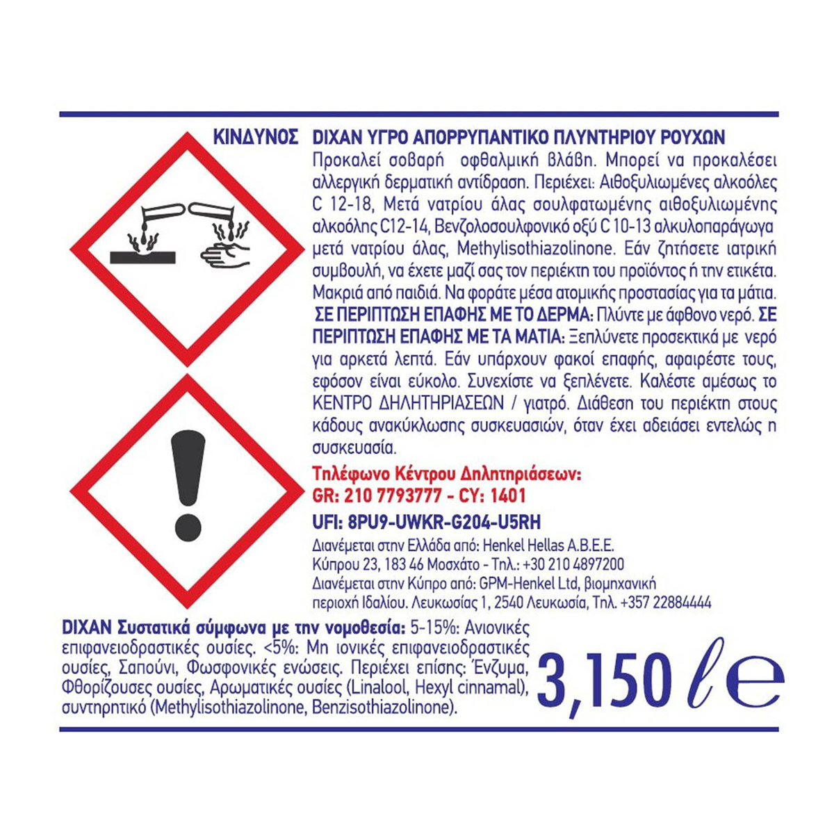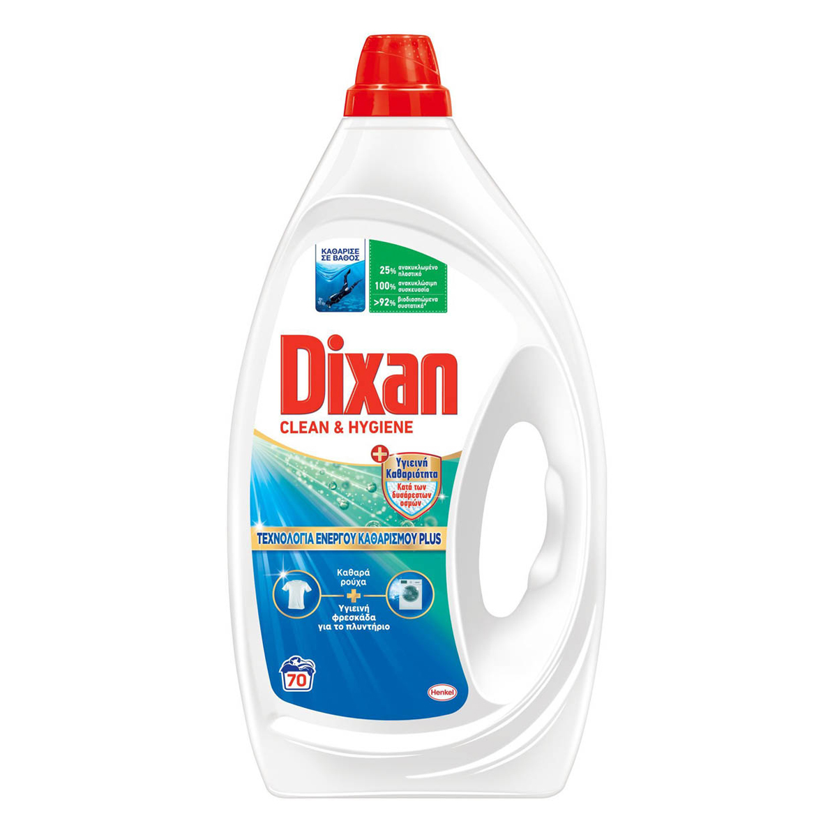 Το Dixan Υγρό Απορρυπαντικό Πλυντηρίου Ρούχων με τεχνολογία Ενεργού Καθαρισμού PLUS, είναι αποτελεσματικό ακόμα και με τους πιο επίμονους λεκέδες. Η νέα του σύνθεση εισχωρεί βαθιά στις ίνες των ρούχων, αφαιρώντας και τα πιο μικρά σωματίδια ρύπων, ενώ παράλληλα προστατεύει τα ρούχα σας από την δημιουργία κόμπων. Το Dixan προχωρά ένα βήμα πιο πέρα καθαρίζοντας σε βάθος τους ρύπους όχι μόνο από τα ρούχα μας αλλά και από τις θάλασσές μας, χάρη στο περιβαλλοντικό του πρόγραμμα "ΚΑΘΑΡΙΣΕ ΣΕ ΒΑΘΟΣ". Μάθετε περισσότερα στο: katharisesevathos.gr