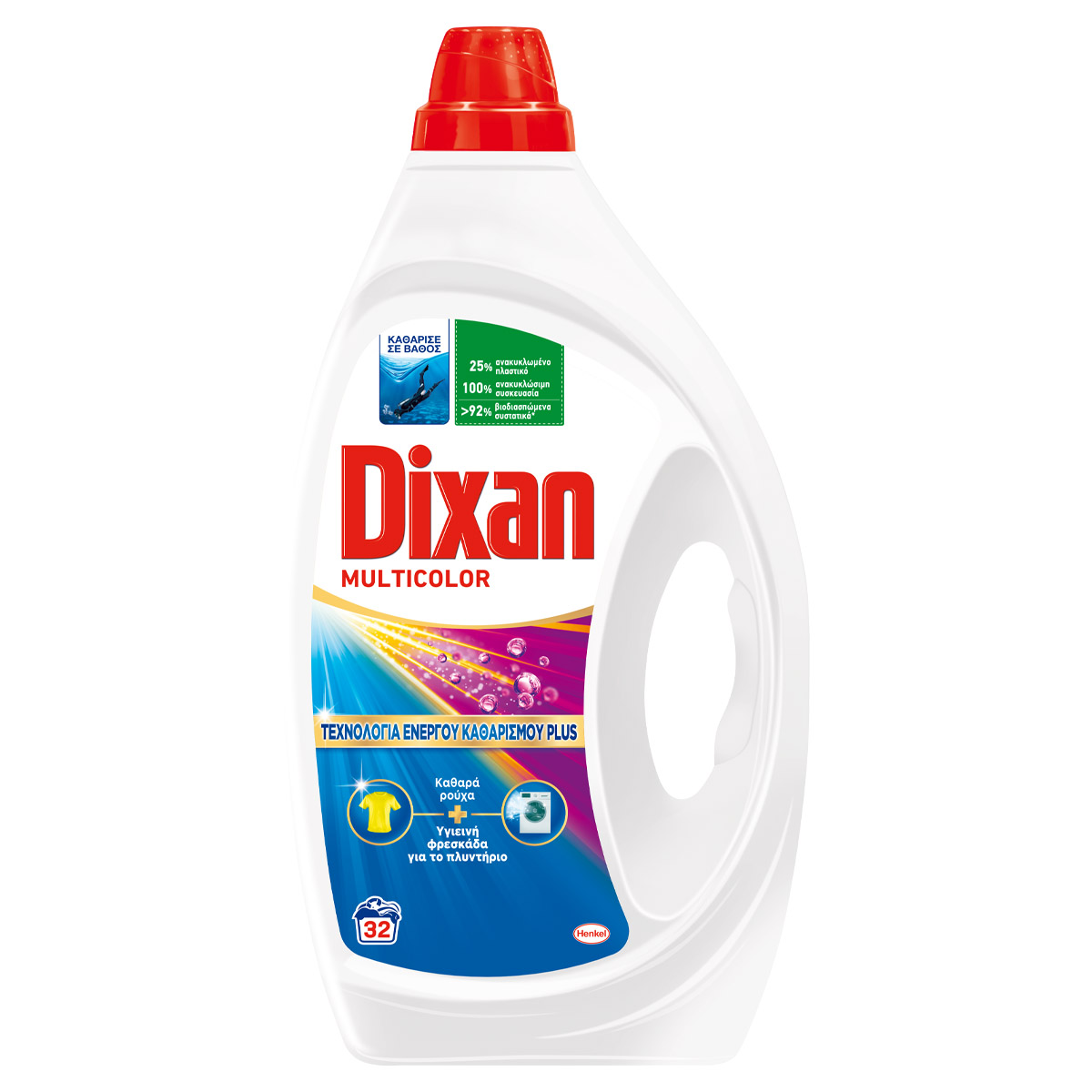 Το Dixan Υγρό Απορρυπαντικό Πλυντηρίου Ρούχων με τεχνολογία Ενεργού Καθαρισμού PLUS, είναι αποτελεσματικό ακόμα και με τους πιο επίμονους λεκέδες. Η νέα του σύνθεση εισχωρεί βαθιά στις ίνες των ρούχων, αφαιρώντας και τα πιο μικρά σωματίδια ρύπων, ενώ παράλληλα προστατεύει τα ρούχα σας από την δημιουργία κόμπων. Το Dixan προχωρά ένα βήμα πιο πέρα καθαρίζοντας σε βάθος τους ρύπους όχι μόνο από τα ρούχα μας αλλά και από τις θάλασσές μας, χάρη στο περιβαλλοντικό του πρόγραμμα "ΚΑΘΑΡΙΣΕ ΣΕ ΒΑΘΟΣ". Μάθετε περισσότερα στο: katharisesevathos.gr.