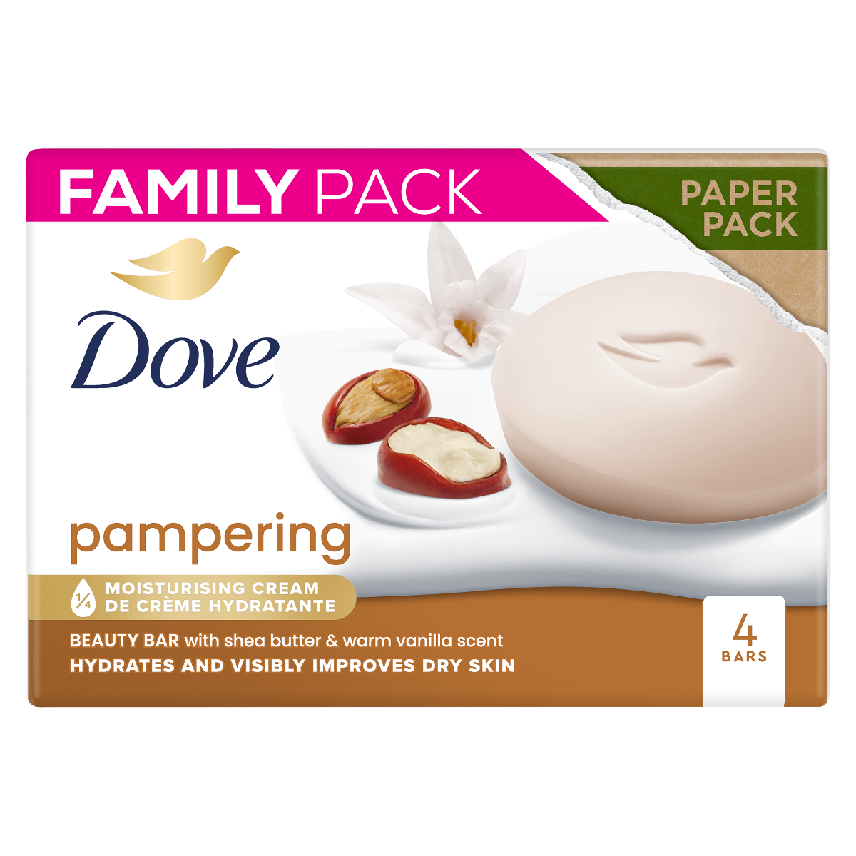 Το Dove Σαπούνι Shea Butter με 1/4 ενυδατική κρέμα, εμπλουτίστηκε με ένα πλούσιο μείγμα από βούτυρο καριτέ και βανίλια.