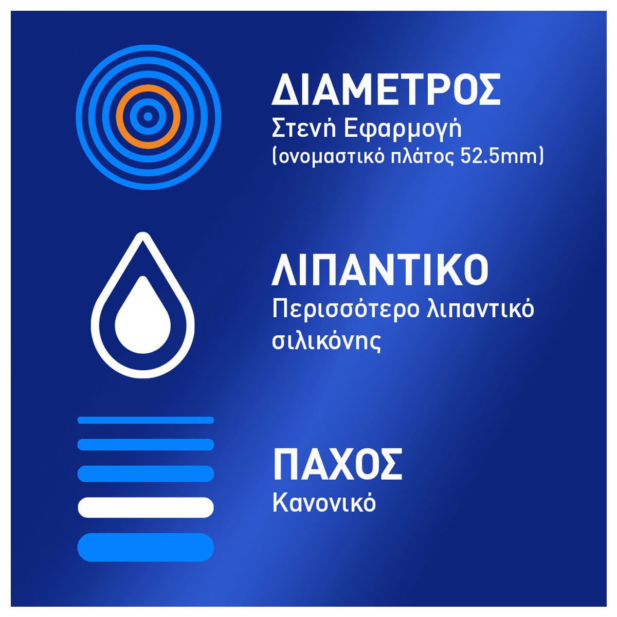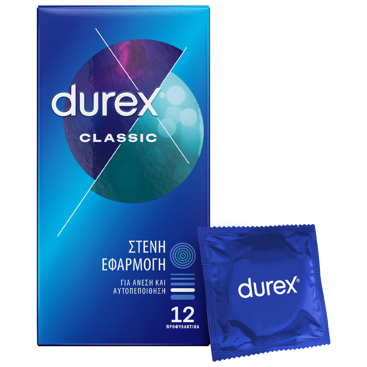 Τα προφυλακτικά Durex Classic Στενή εφαρμοργή κατασκευάστηκαν γιατί κανείς δεν αισθάνεται άνετα φορώντας πράγματα που δεν του ταιριάζουν. Η στενή εφαρμογή είναι ιδιαίτερα σημαντική όταν πρόκειται για προφυλακτικά - στην πραγματικότητα, η εύρεση του προφυλακτικού που σας ταιριάζει μπορεί να έχει μεγάλο αντίκτυπο στην ευχαρίστηση και την ηρεμία σας. Οπότε αν χρειάζεστε στενότερη εφαρμογή από τη συνηθισμένη των προφυλακτικών μας, μπορείτε ακόμα να χαλαρώσετε και να απολαύσετε το σεξ χωρίς να χρειάζεται να ανησυχείτε για ο, τιδήποτε θα μπορούσε να χαλάσει το στυλ σας. Ποιότητα Durex: 100% ηλεκτρονικά ελεγμένα με 5 επιπλέον ελέγχους ποιότητας που διεξάγονται σε κάθε παρτίδα. Επίσης είναι δερματολογικά ελεγμένα. Θυμηθείτε ότι καμία μέθοδος αντισύλληψης δεν προσφέρει 100% προστασία έναντι της εγκυμοσύνης, του ιού HIV ή άλλων σεξουαλικά μεταδιδόμενων ασθενειών. Καλό είναι να είστε ενημερωμένοι, γι’ αυτό διαβάστε τις πληροφορίες που εσωκλείονται, ειδικά αν χρησιμοποιείτε προφυλακτικά για πρωκτικό ή στοματικό σεξ.