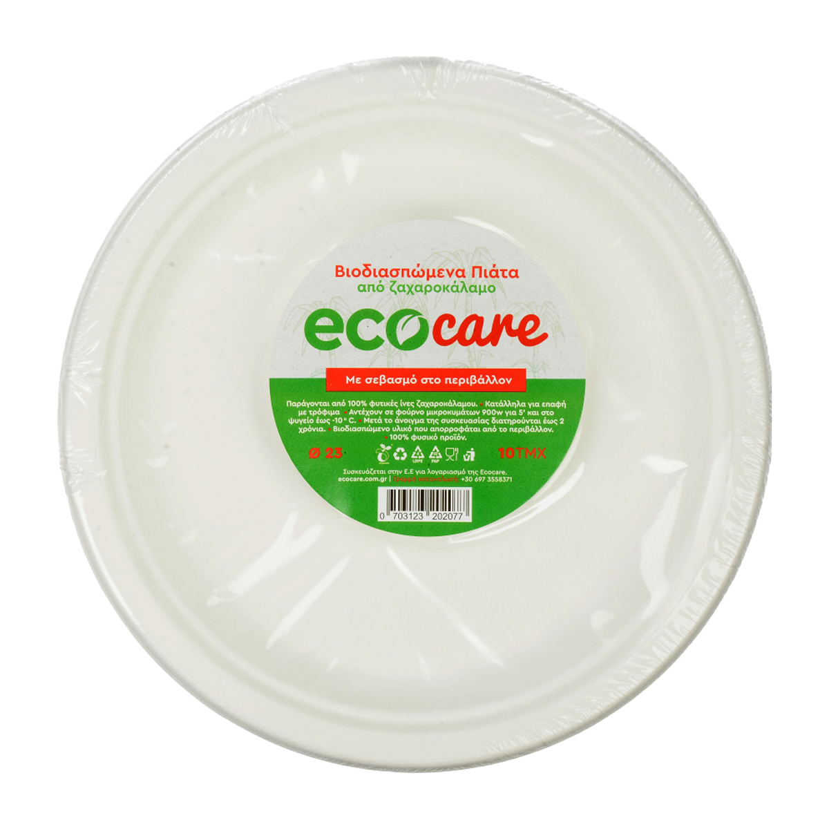 Ecocare Πιάτο Στρογγυλό Από Ζαχαροκάλαμο 23 cm 10 Τεμάχια
