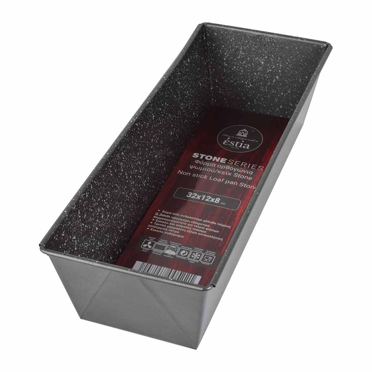 Αντικολλητική φόρμα ψωμιού της σειράς Stone, με σώμα από ατσάλι με αντικολλητική επίστρωση εσωτερικά και εξωτερικά.
