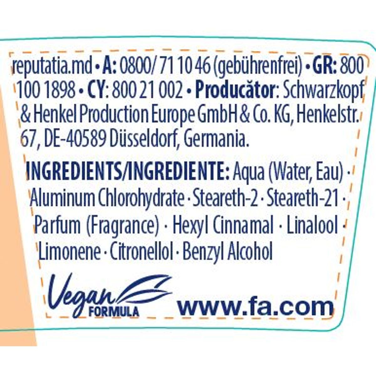 Henkel Ελλάς Α.Β.Ε.Ε., Κύπρου 23, 183 46, Μοσχάτο, Τηλέφωνο καταναλωτών: 800 11 70 800, www.henkel.gr