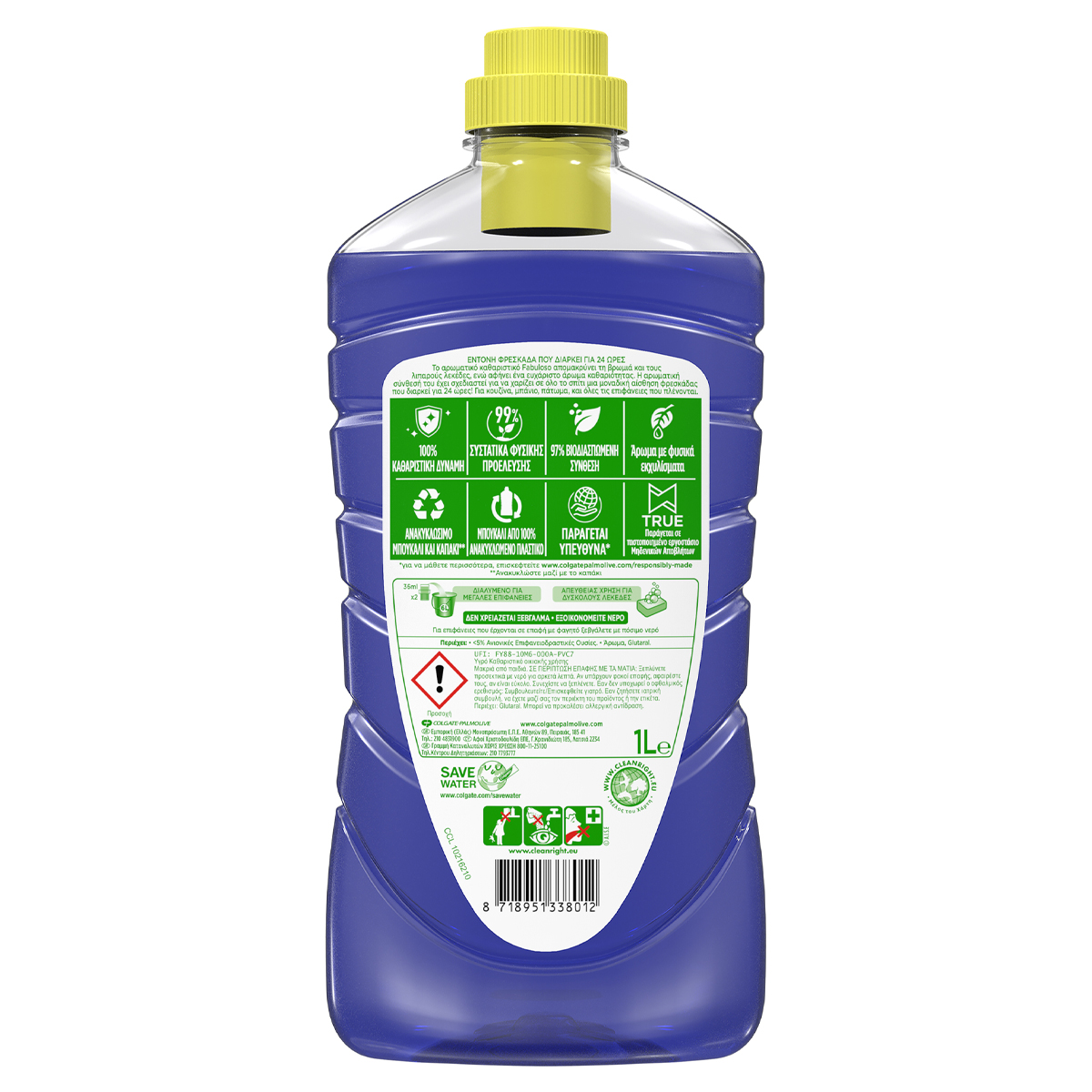 ΕΝΤΟΝΗ ΦΡΕΣΚΑΔΑ ΠΟΥ ΔΙΑΡΚΕΙ! Το αρωματικό καθαριστικό Fabuloso, τώρα με 99% συστατικά φυσικής προέλευσης, χαρίζει αίσθηση φρεσκάδας που διαρκεί για 24ώρες! 97% βιοδιασπώμενη σύνθεση. Ανακυκλώσιμο μπουκάλι και καπάκι. Μπουκάλι από 100% ανακυκλωμένο πλαστικό.