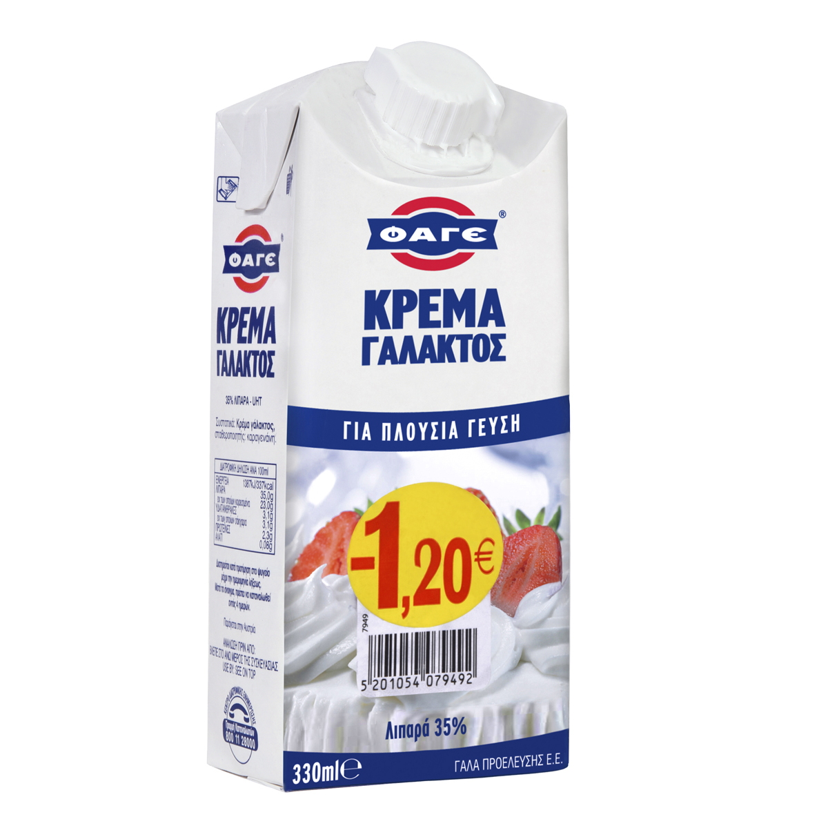 Η κρέμα γάλακτος ΦΑΓΕ με 35% λιπαρά είναι εύκολη στη χρήση και προσδίδει πλούσια γεύση στα φαγητά αλλά και τα γλυκά μας.