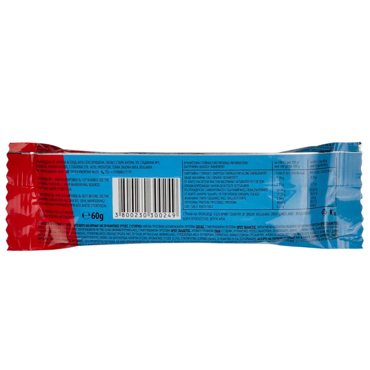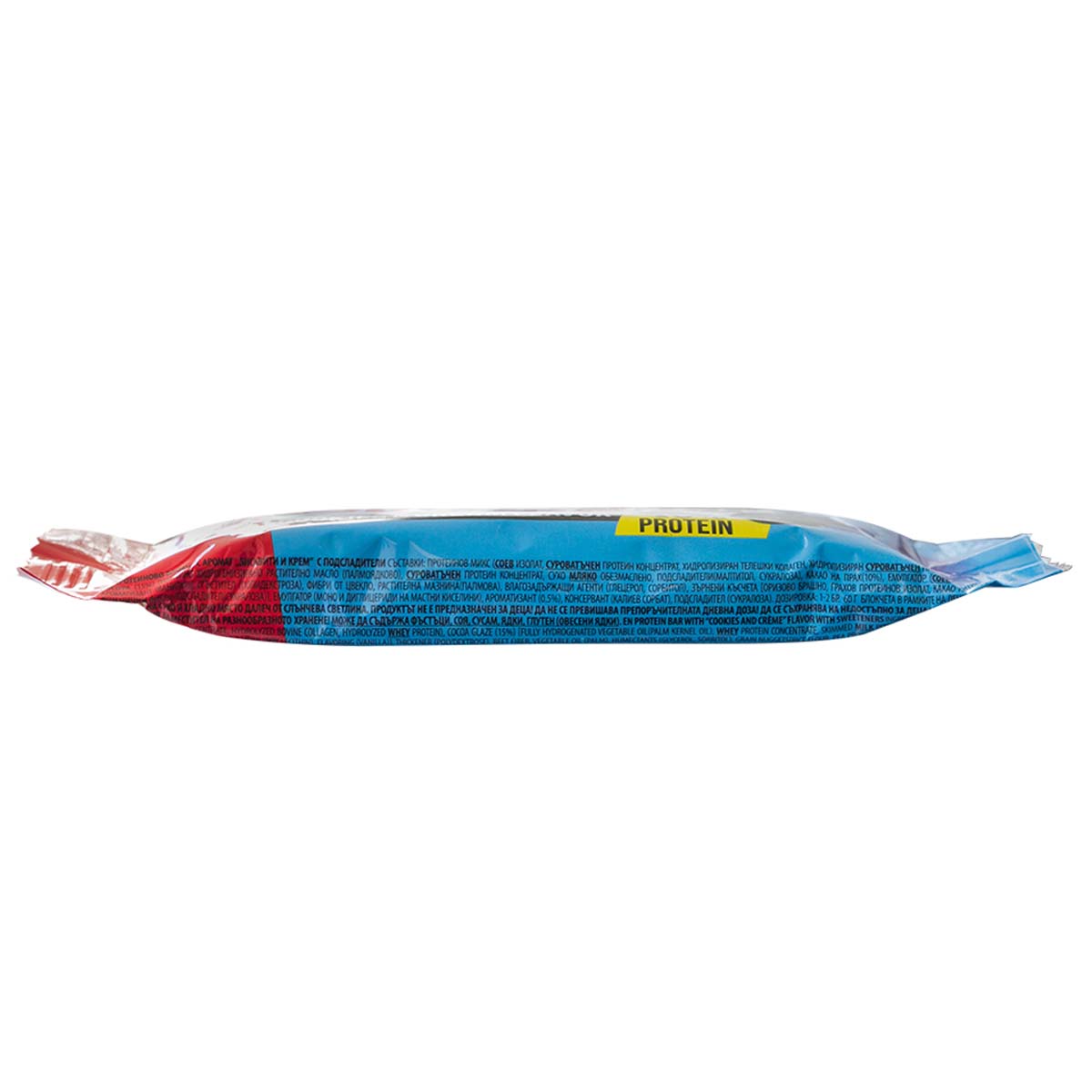 Μείγμα πρωτεϊνών (απομονωμένη πρωτεΐνη ΣΟΓΙΑΣ, συμπυκνωμένη πρωτεΐνη ΟΡΟΥ ΓΑΛΑΚΤΟΣ, υδρολυμένο κολλαγόνο βοδινού, υδρολυμένη πρωτεΐνη ΟΡΟΥ ΓΑΛΑΚΤΟΣ, επικάλυψη σοκολάτας (15%) [πλήρως υδρογονωμένο φυτικό έλαιο (φοινικοπυρηνέλαιο), συμπυκνωμένη πρωτεΐνη ΟΡΟΥ ΓΑΛΑΚΤΟΣ, αποβουτυρωμένο ΓΑΛΑ σε σκόνη, γλυκαντικές ουσίες (μαλτιτόλη, σουκραζόλη), αλκαλικό κακάο σε σκόνη (ρυθμιστές οξύτητας Ε5011) 10%, Γαλακτωματοποιητής (λεκιθίνη ΣΟΓΙΑΣ), αρωματική ύλη (βανίλια)], εδώδιμες ίνες τεύτλων, φυτικό έλαιο (φοινικέλαιο), υγροσκοπικά μέσα (γλυκερόλη, σορβιτόλη), κόκκοι σιτηρών [ρυζάλευρο, απομονωμένη πρωτεΐνη μπιζελιού, χαμηλής περιεκτικότητας σε λιπαρά κακάο σε σκόνη, εδώδιμες ίνες ΣΙΤΟΥ, γλυκαντική ουσία (Σουκραλόζη)], γαλακτωματοποιητής (λεκιθίνη ΣΟΓΙΑΣ) αρωματικές ουσίες (0,5%) συντηρητικό (σορβικό κάλιο), γλυκαντική ουσία (σουκραλόζη).