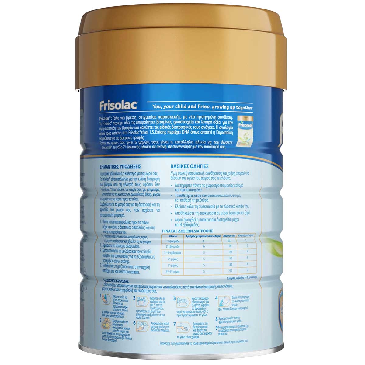 Το μητρικό γάλα είναι ό,τι καλύτερο για το μωρό σας. Το γάλα σε σκόνη Frisolac είναι γάλα 1ης βρεφικής ηλικίας και ενδείκνυται για βρέφη από τη γέννηση µέχρι τον 6ο µήνα, εφόσον δεν θηλάζουν. Είναι στιγµιαίας παρασκευής, µε νέα προηγµένη σύνθεση που καλύπτει τις ειδικές διατροφικές ανάγκες των βρεφών και παρέχει ποσοτικά και ποιοτικά τα απαραίτητα θρεπτικά συστατικά (βιταµίνες, ιχνοστοιχεία, λιπαρά οξέα κ.λπ.) για την υγιή ανάπτυξή τους.