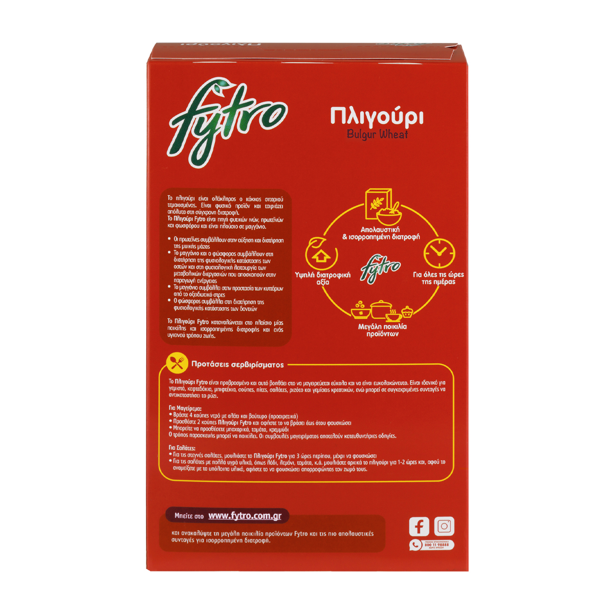 Το Πλιγούρι Fytro είναι πηγή φυτικών ινών και φωσφόρου και είναι πλούσιο σε μαγγάνιο. Το Πλιγούρι Fytro είναι ένα προϊόν φυσικό και ταιριάζει απόλυτα στη σύγχρονη διατροφή. Είναι προβρασμένο και αυτό βοηθάει στο να μαγειρεύεται εύκολα και να είναι ευκολοχώνευτο. Χρησιμοποιείται στις σαλάτες, ενώ μπορεί σε συγκεκριμένες συνταγές, να αντικαταστήσει το ρύζι.