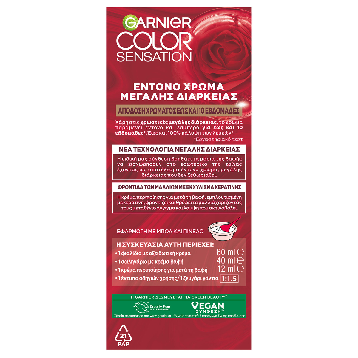 Garnier Color Sensation Βαφή Μαλλιών Ν6.60 Έντονο Κόκκινο Vegan 40 ml