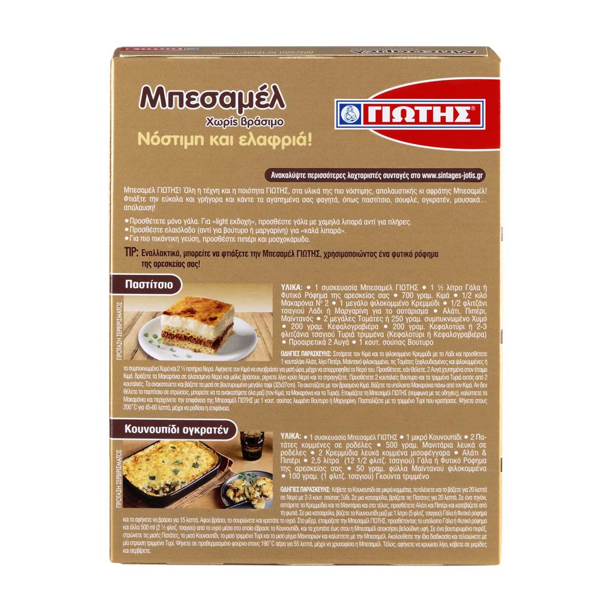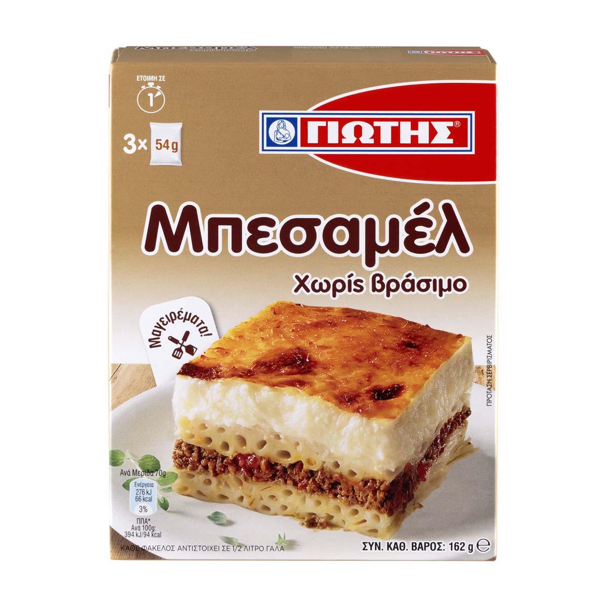 Σπιτική μπεσαμέλ, εύκολα, γρήγορα και με σίγουρη επιτυχία. Απλά χτυπάτε με κρύο γάλα για 1 λεπτό και έχετε το πιο νόστιμο και αφράτο αποτέλεσμα. Με τα αγνά υλικά και την ποιότητα της ΓΙΩΤΗΣ, αγαπημένα φαγητά, όπως το παστίτσιο, ο μουσακάς, το ογκρατέν και το σουφλέ, γίνονται ακόμα πιο λαχταριστά!