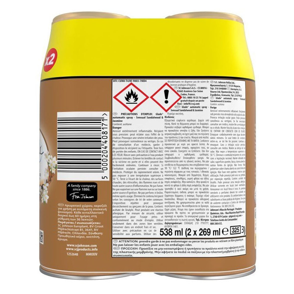 Glade Αρωματικό Χώρου Αντ/κό Sandalwood & Jasmine 2 x 269 ml