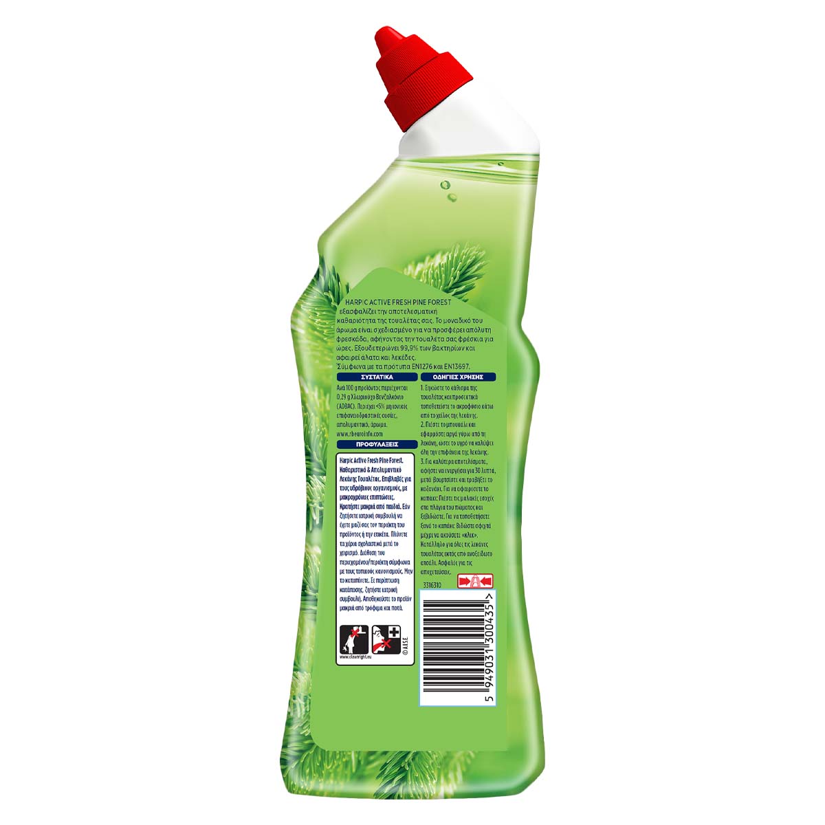 To HARPIC ACTIVE FRESH PINE εξασφαλίζει αποτελεσματική καθαριότητα στην τουαλέτα σας. Το μοναδικό του άρωμα αφήνει φρεσκάδα στην τουαλέτα σας για ώρες. Επιπλέον εξουδετερώνει 99,9% των βακτηρίων και αφαιρεί άλατα και λεκέδες λεκάνης Τουαλέτας.