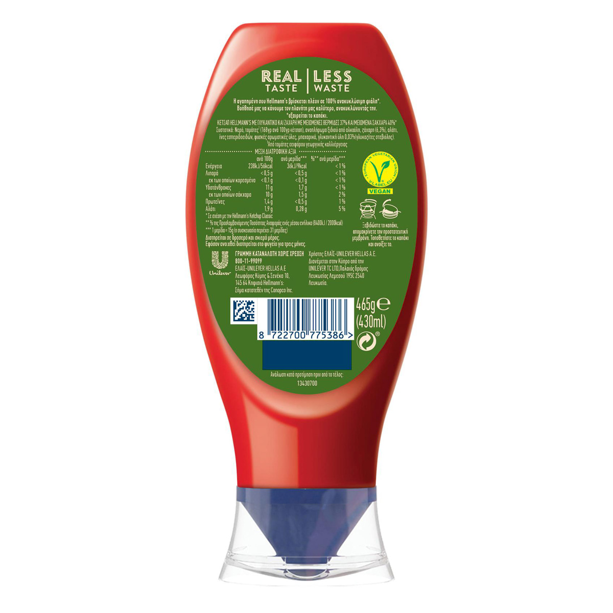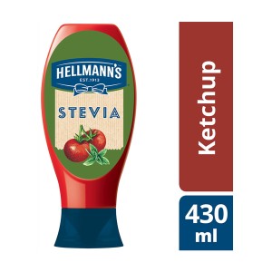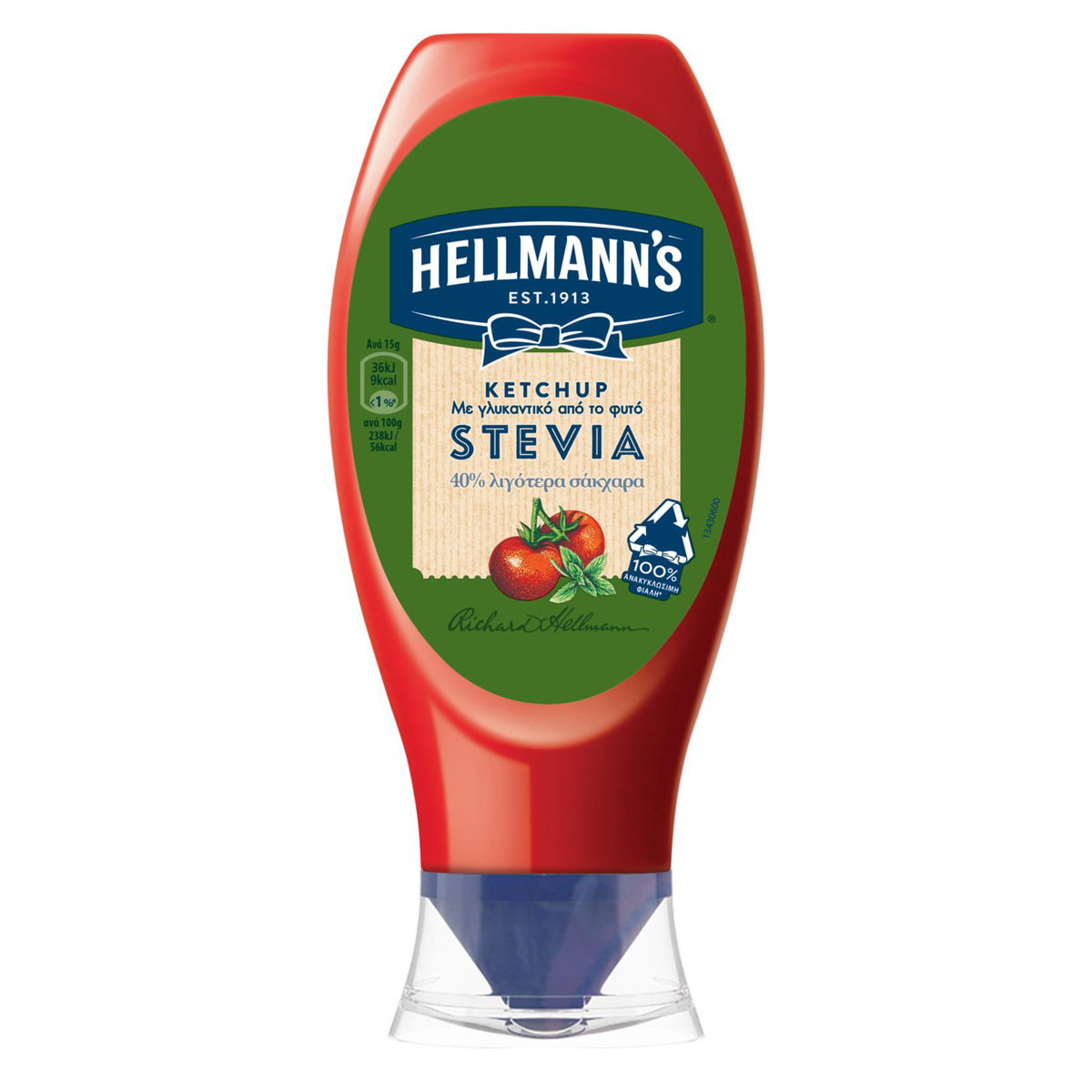 Με μόλις 8 θερμίδες ανά κουταλιά και με 40% λιγότερη ζάχαρη σε σχέση με τη Hellmann’s Classic, η Ketchup με Stevia της Hellmann’s δίνει ξεχωριστή γεύση στα αγαπημένα γεύματα χωρίς τον φόβο των περιττών θερμίδων.