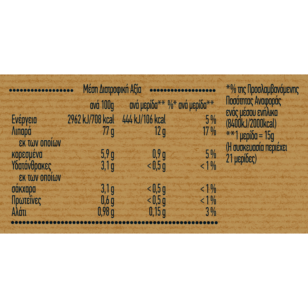 * ΑΠΟΠΟΙΗΣΗ ΕΥΘΥΝΗΣ: Η Χαλκιαδάκης ΑΕ σεβόμενη πάντα τους καταναλωτές της προσπαθεί, οι πληροφορίες που παρέχει στην ιστοσελίδα της να είναι αξιόπιστες και βάση πάντα των στοιχείων που λαμβάνει από τους συνεργαζόμενους προμηθευτές της. Πάραυτα η Χαλκιαδάκης ΑΕ ενημερώνει ότι ενδέχεται να υπάρχουν διαφορές μεταξύ των στοιχείων που αναφέρονται και των στοιχείων που αναγράφονται στις ετικέτες των προϊόντων, για τεχνικούς λόγους που μπορεί να οφείλονται στην ανανέωση των αποθεμάτων. Τα στοιχεία που παρουσιάζονται στον ιστότοπο δεν αντικαθιστούν για κανένα λόγο τα στοιχεία που αναγράφονται στις ετικέτες των προϊόντων ενώ για κάθε ασυμφωνία, υπερισχύουν πάντα οι πληροφορίες στις ετικέτες των προϊόντων. Οι καταναλωτές οφείλουν να ελέγχουν, πριν από την αγορά αλλά και πριν από την κατανάλωση του προϊόντος, τα στοιχεία που αναγράφονται στις ετικέτες και να το καταναλώνουν σύμφωνα πάντα με την προβλεπόμενη χρήση που ορίζει ο προμηθευτής. Σε περίπτωση ασυμφωνίας ο καταναλωτής παραιτείται ρητά από κάθε δικαίωμα προσφυγής εναντίον της Χαλκιαδάκης ΑΕ.