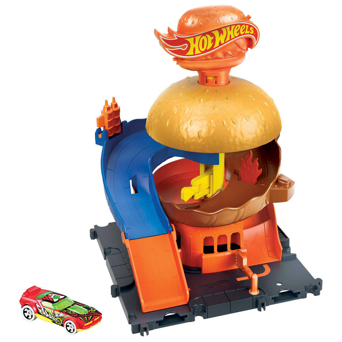 Τα σετ Hot Wheels City επιτρέπουν στα παιδιά να δημιουργήσουν τη δική τους πόλη με πίστες για σούπερ κόλπα και συναρπαστικές περιπέτειες. Κάθε σετ βασίζεται στο θέμα Hot Wheels City Nemesis, ενσωματώνοντας στοιχεία που δημιουργούν απίστευτες ιστορίες δράσης. Όλα τα σετ συνδέονται με άλλα σετ Hot Wheels μέσω πολλαπλών σημείων σύνδεσης και το καθένα περιλαμβάνει ένα αυτοκινητάκι Hot Wheels για να ξεκινήσει το παιχνίδι αμέσως. Βασισμένα σε γνωστά θέματα, όπως ένα συνεργείο, ένα εστιατόριο drive-thru, ένα πλυντήριο αυτοκινήτων και ένα γκαράζ στάθμευσης, τα παιδιά θα θέλουν να τα συλλέξουν όλα για αμέτρητες ιστορίες. Το καθένα πωλείται ξεχωριστά, ανάλογα με τη διαθεσιμότητα. Τα χρώματα και τα σχέδια μπορεί να διαφέρουν.